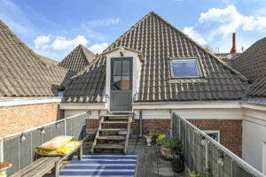Via de slaapkamer bereik je het ruime dakterras, een ware oase van rust midden in de stad. Hier is plek voor een loungehoek én een grote eettafel — de ideale plek voor een barbecue met vrienden of een ontspannen avond onder de sterren.