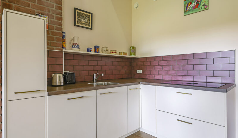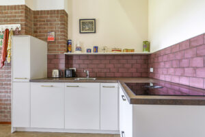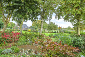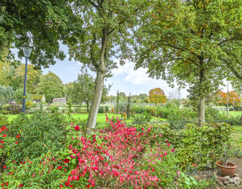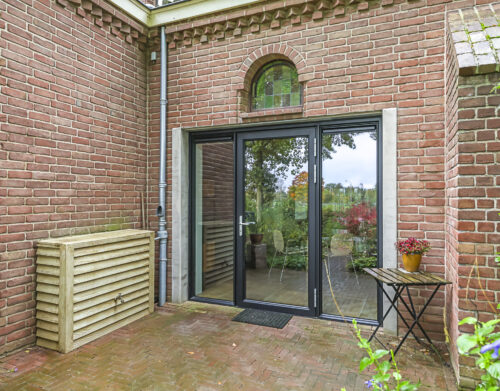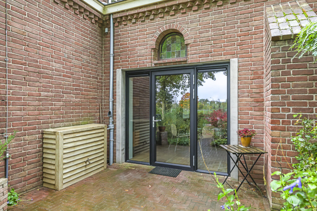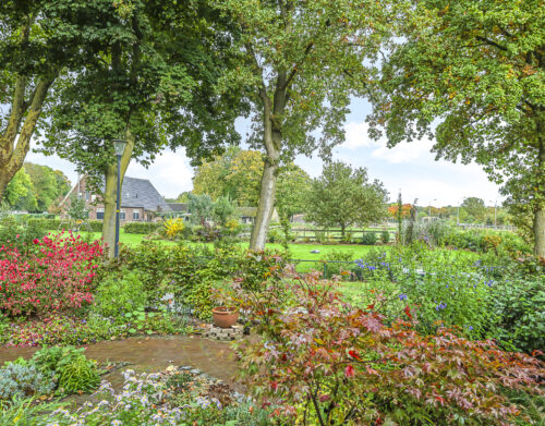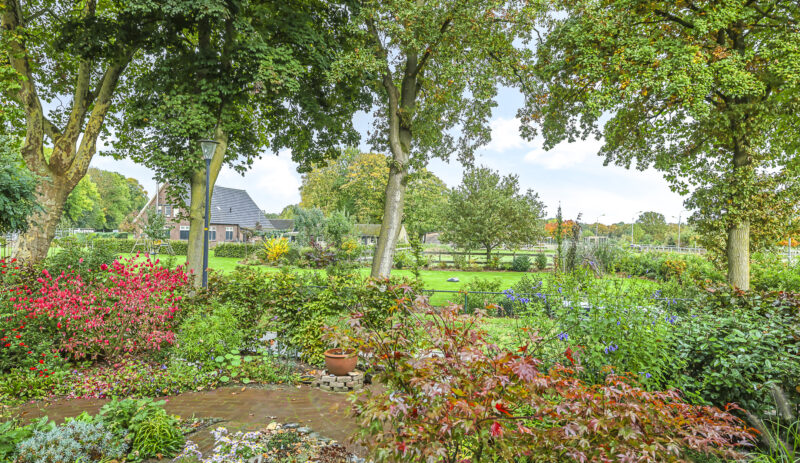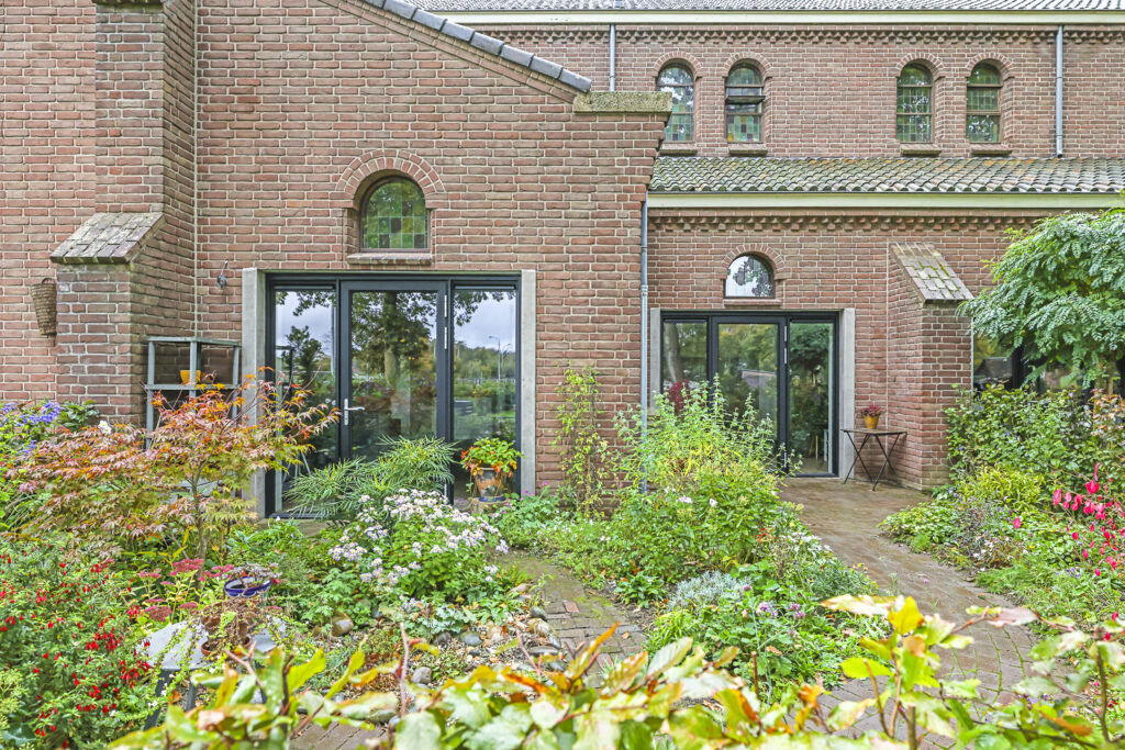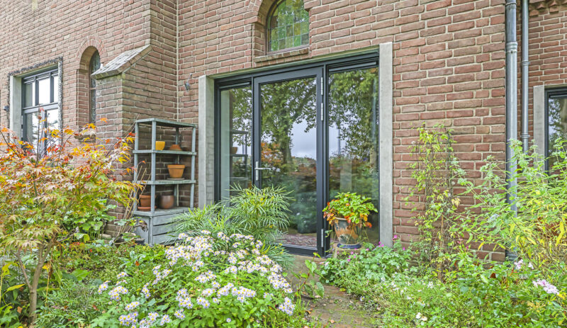 Zowel vanaf de zit als de eethoek krijg je rechtstreeks toegang tot de bijbehorend tuin. Deze buitenruimte is sfeervol en groen aangelegd en bied een vrij uitzicht richting een weide met paarden. De woning is via de tuin met achterom ook rechtstreeks te betreden.