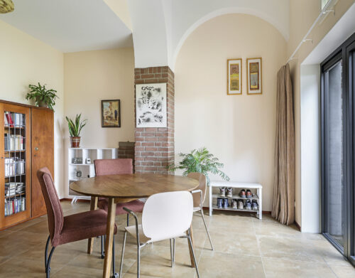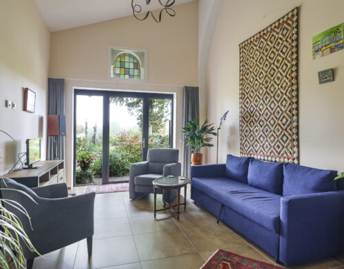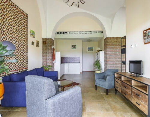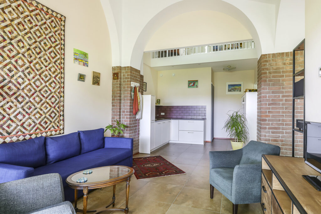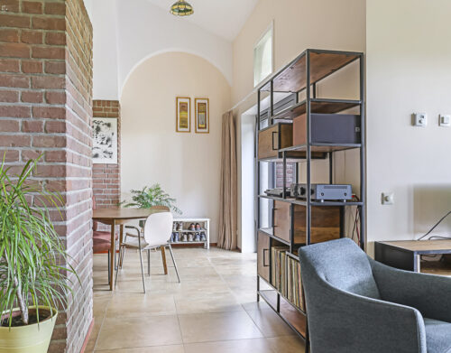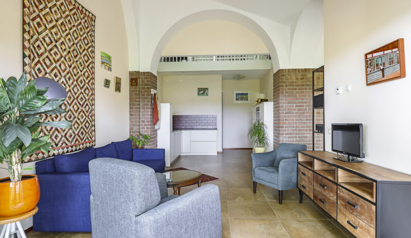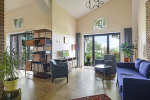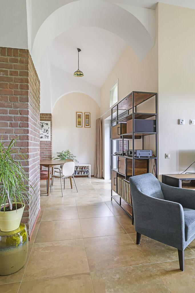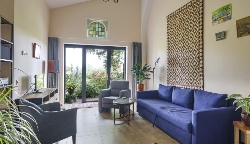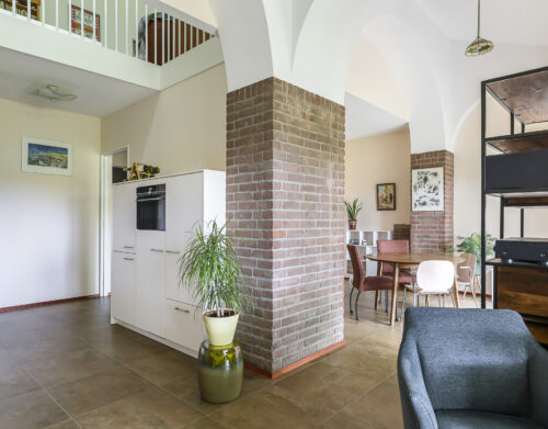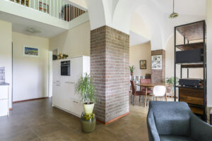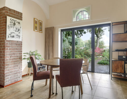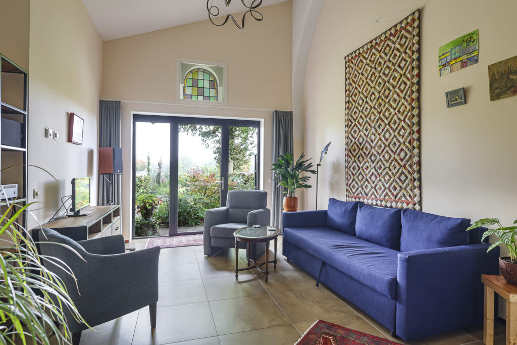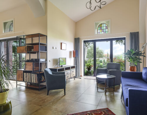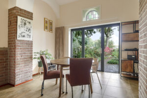 • Hoge plafonds en authentieke details zoals glas in lood en zichtbare delen van de draag constructie
