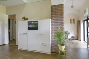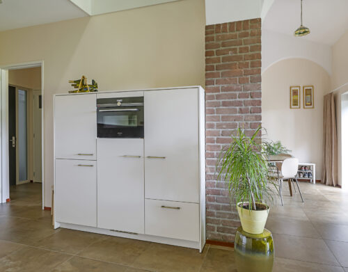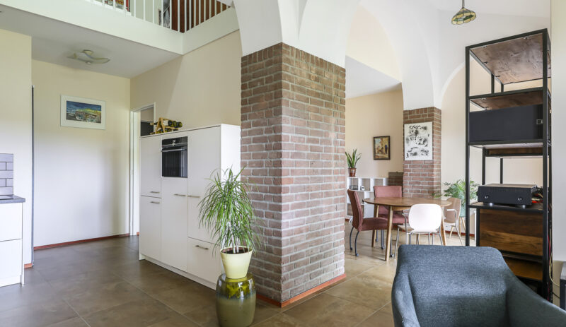 Via de hal kom je direct in de open keuken uit 2022 voorzien koel- vriescombinatie, oven, vaatwasser en 4 pits Bora inductie kookplaat met ingebouwde afzuiging. Overal in het appartement vallen de originelen constructieve delen van het kerkgebouw in het het oog, je woont hier echt een in een stuk historie. Aan de open keuken gelegen zijn de ruime lichte woonkamer en eetkamer. De begane grond is voorzien van vloerverwarming. Alsmede aan de hal gelegen zijn de berging/technische ruimte met warmte pomp, het toilet voorzien van wandcloset en fonteintje en de badkamer (2022) voorzien van inloop douche, wastafel met meubel en aanvullende elektrische handdoek radiator. Bij de aanleg van de badkamer is reeds rekening gehouden met rolstoelvriendelijkheid. Dit appartement bied de mogelijkheid om volledig levensloop bestendig begane grond te wonen door de eetkamer om te vormen tot slaapkamer, verder bevinden zich alle voorzieningen reeds op de begane grond.