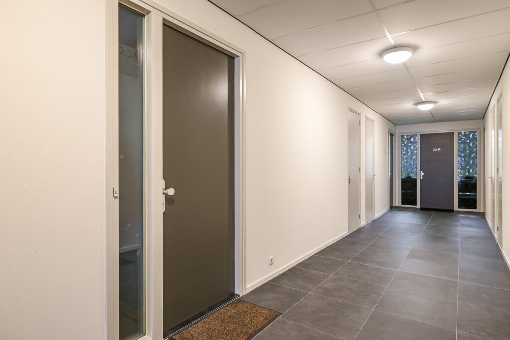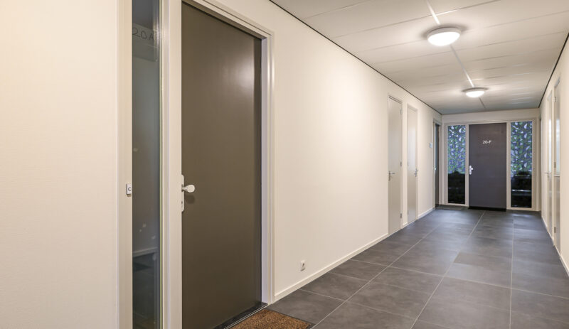 Bij binnenkomst in het complex valt meteen de strakke, hoogwaardige afwerking op. Via de gemeenschappelijke hal voorzien van brievenbussen en bel paneel kom je het appartement binnen.