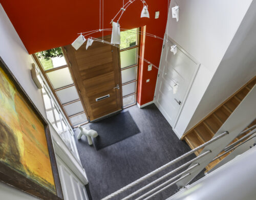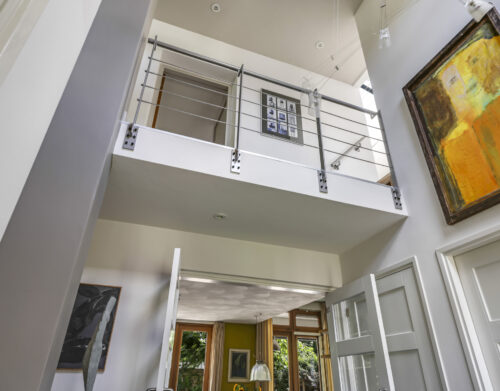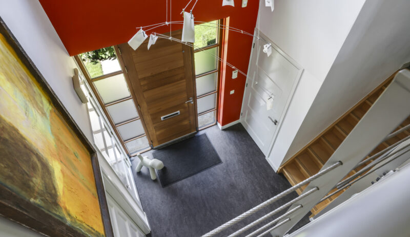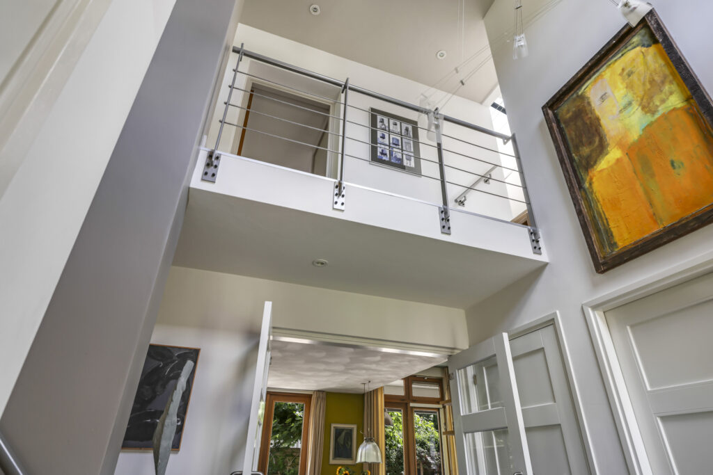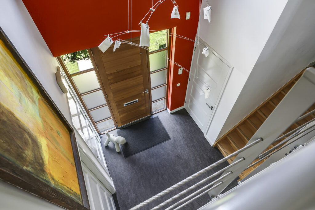 De royale ontvangsthal zet direct de toon: een imposante vide tot in de nok en een elegante bordestrap geven de ruimte grandeur. Vanuit hier bereikt u alle belangrijke leefvertrekken.