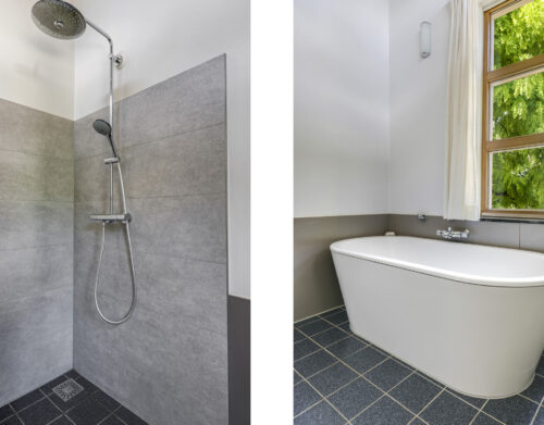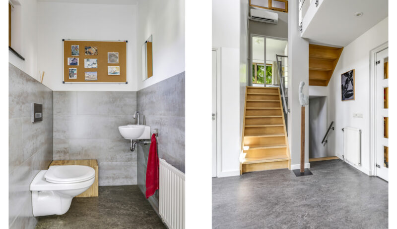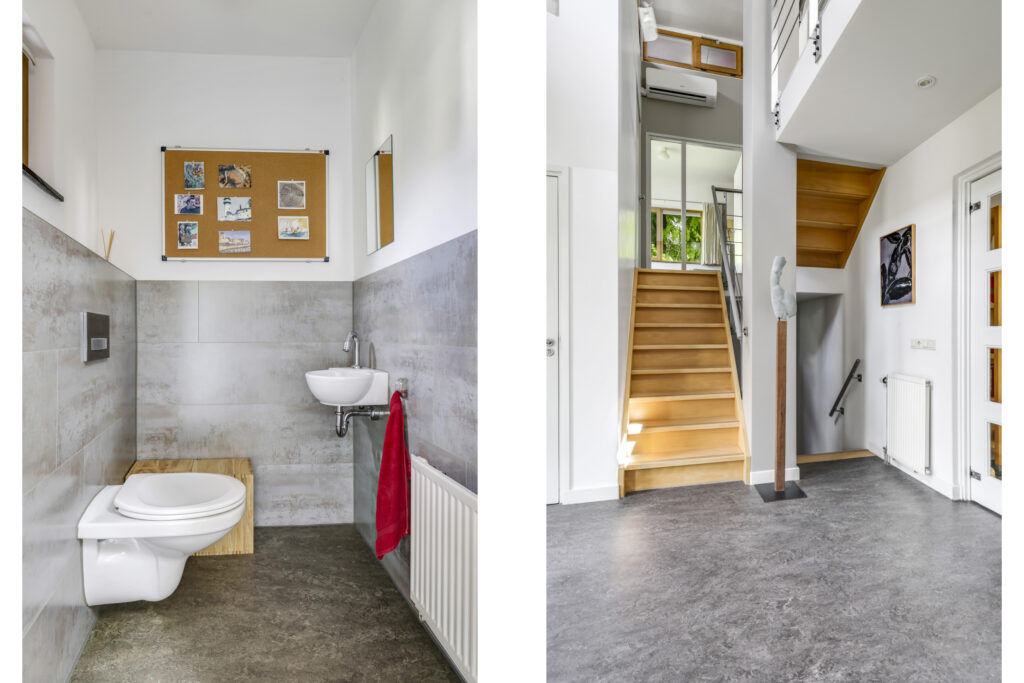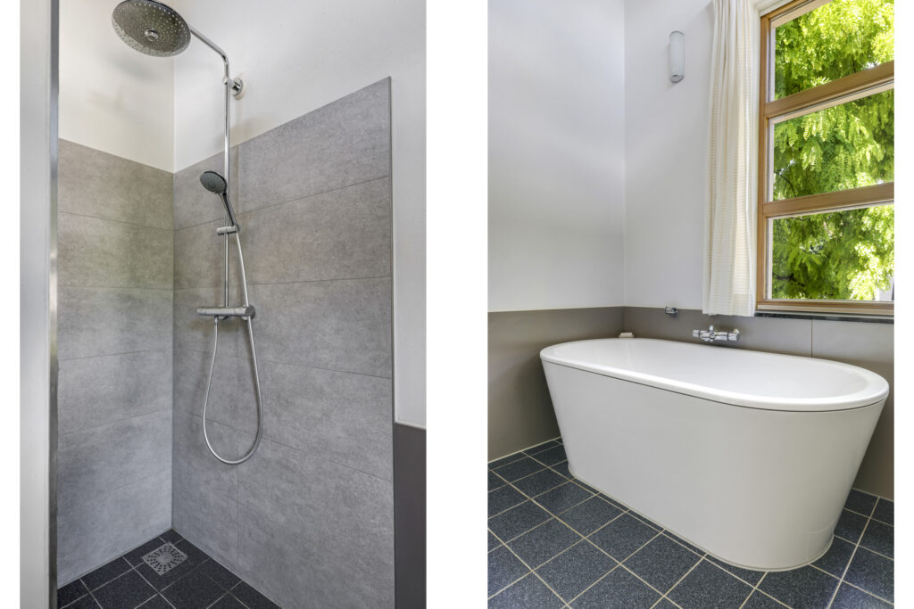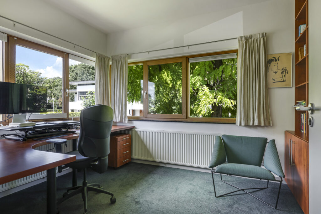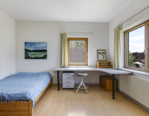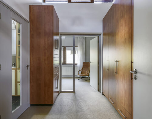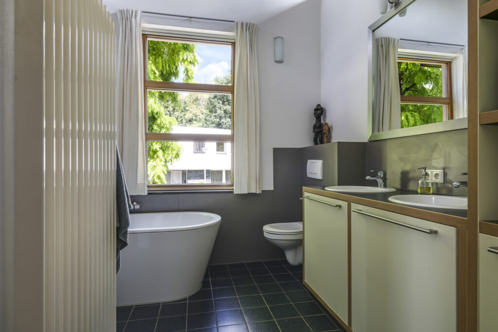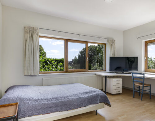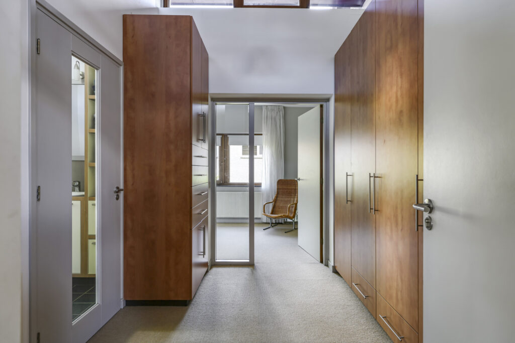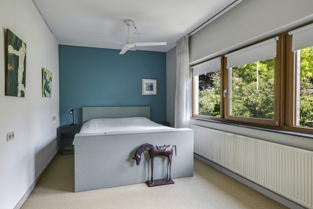 De stijlvolle trap leidt u naar de eerste verdieping met maar liefst vijf volwaardige slaapkamers – ideaal voor een groot gezin of wie ruimte zoekt voor logees, werk of hobby’s. Twee complete badkamers, een separaat toilet en zelfs een urinoir met fontein maken dit woonverdiepingsplan bijzonder praktisch en luxe. Via de garderobekamer, die aansluit op één van de badkamers, krijgt u toegang tot de master bedroom.