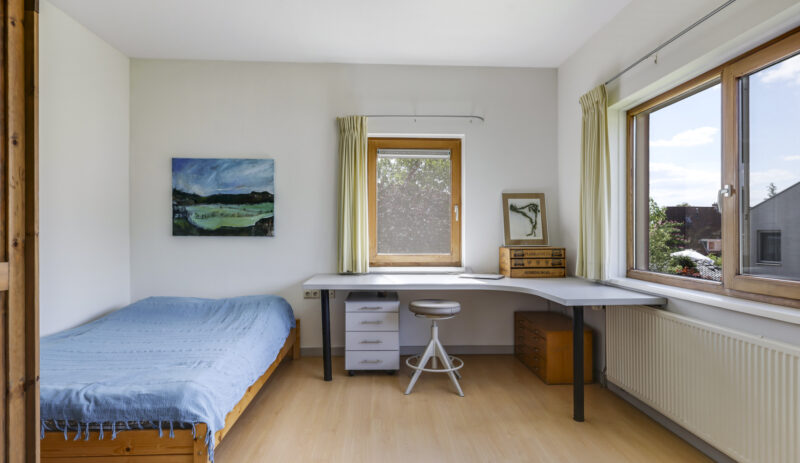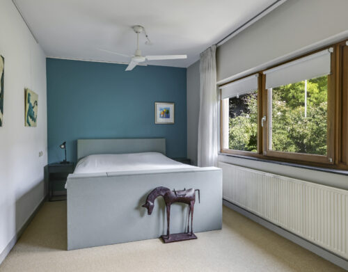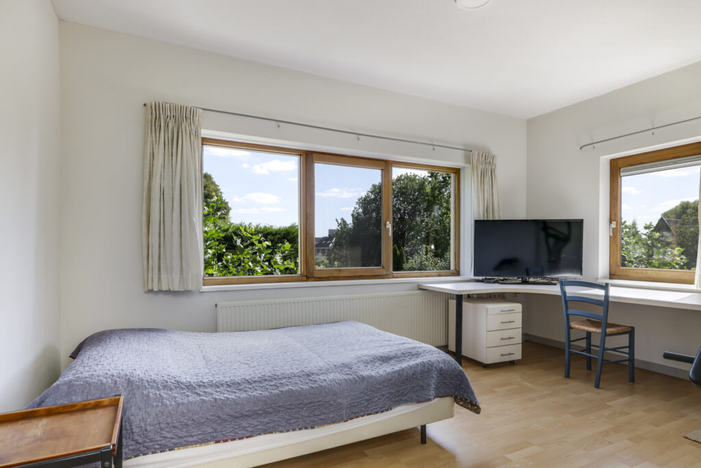 De zesde slaapkamer, voorzien van toegang tot een balkon, biedt volop mogelijkheden als slaap-, studie- of ontspanningsruimte. Het daglicht en het uitzicht maken dit een heerlijke plek om u even terug te trekken.