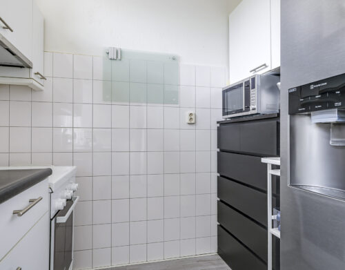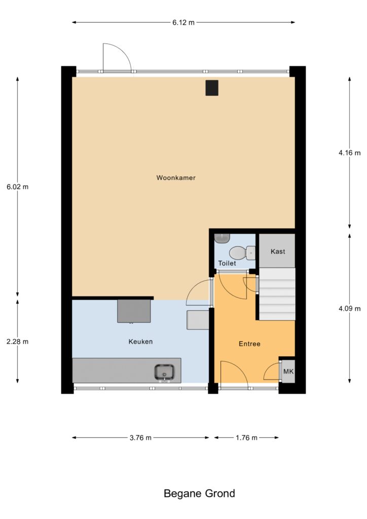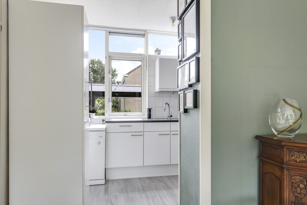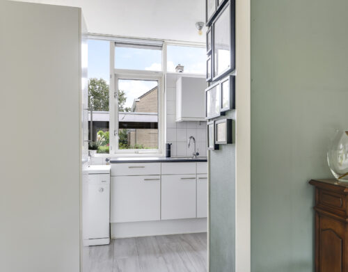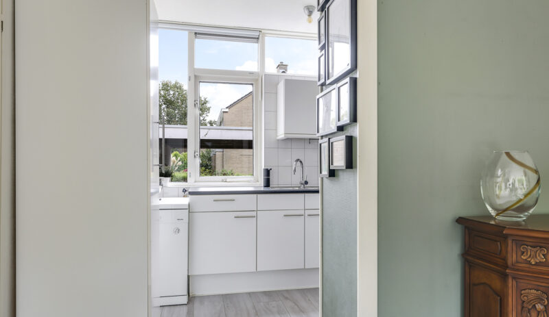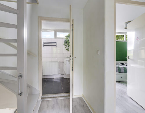 Via de overdekte entree kom je in de hal met trapopgang, trapkast en toilet. De woonkamer is licht en ruim, met voldoende plek voor een gezellige zithoek en eettafel. Vanuit de woonkamer heb je direct toegang tot de achtertuin via een praktische loopdeur. De woonkamer is voorzien van Airco welke in de winter zorgt voor voordelige verwarming. De halfdichte keuken is functioneel en biedt volop mogelijkheden voor wie graag zijn eigen draai geeft aan het interieur.