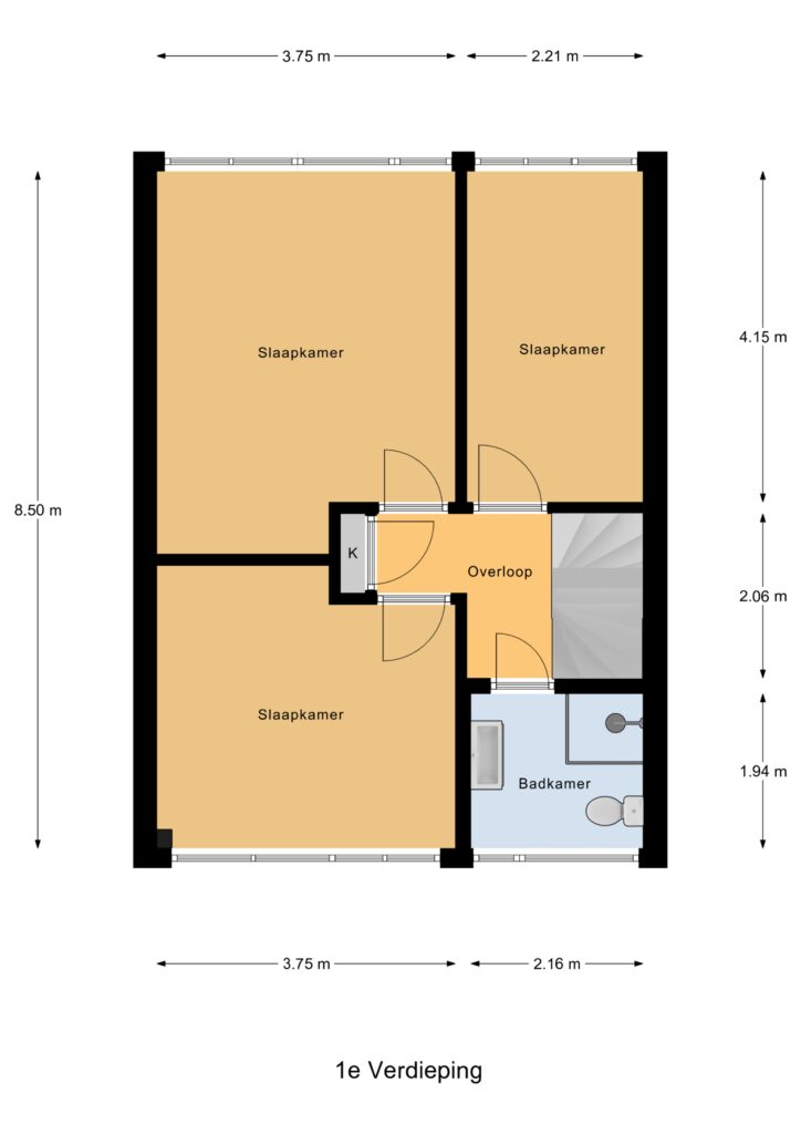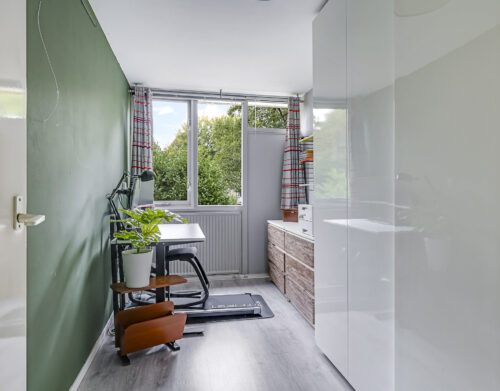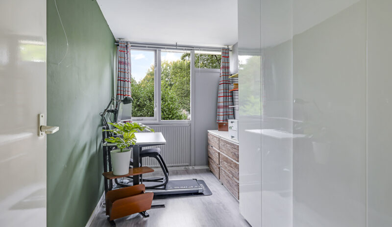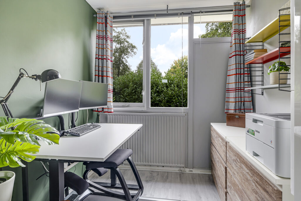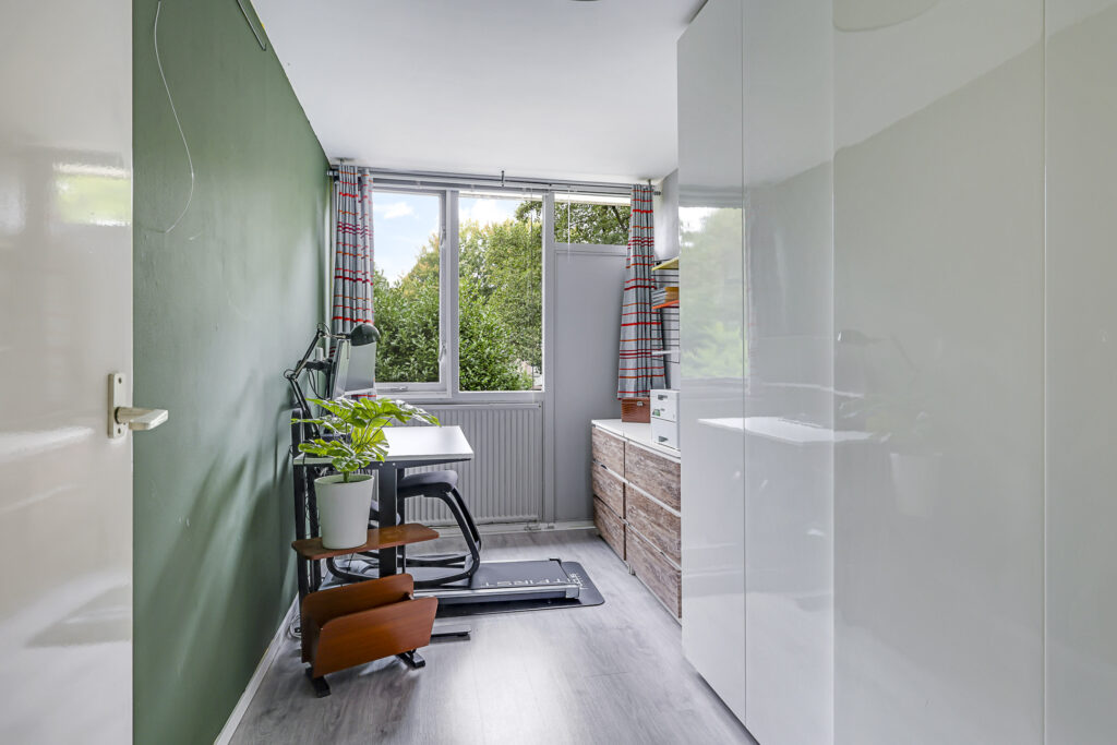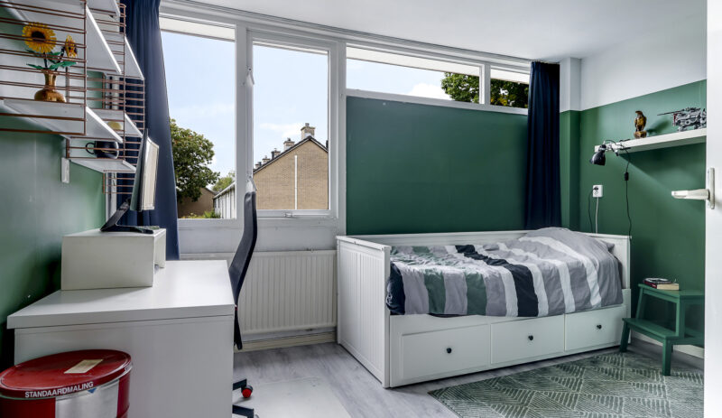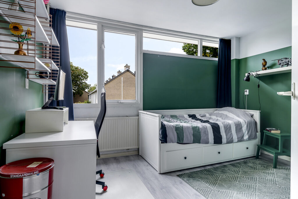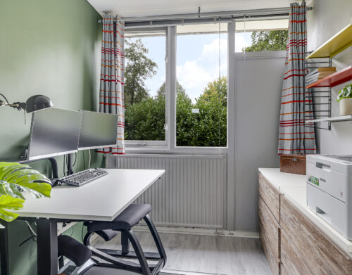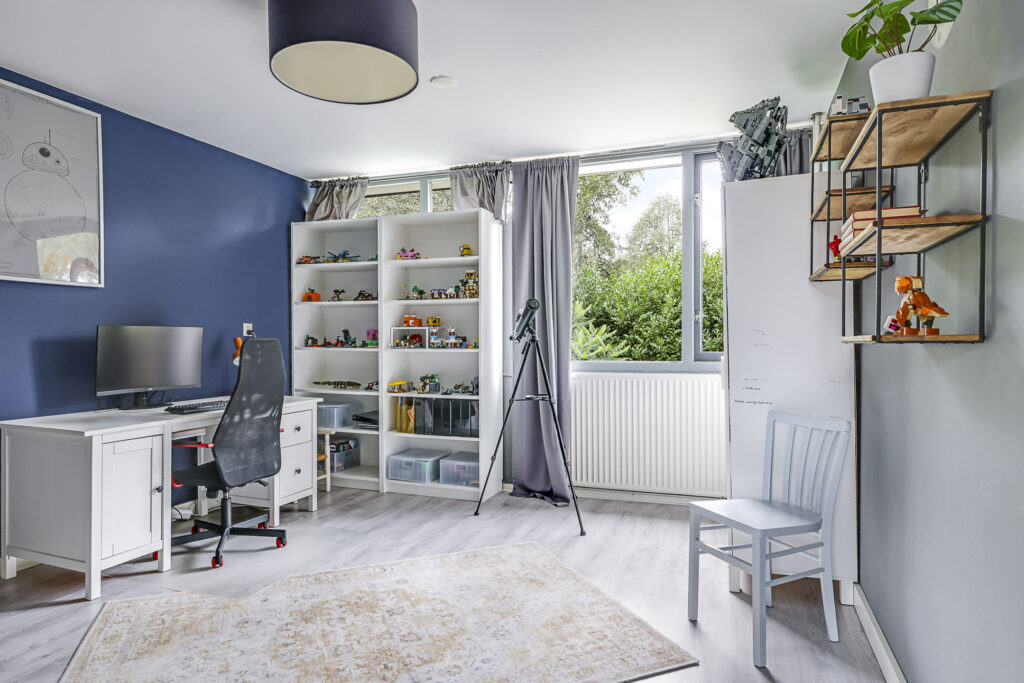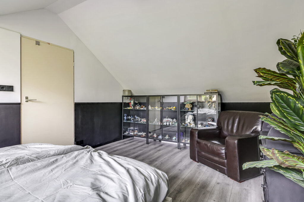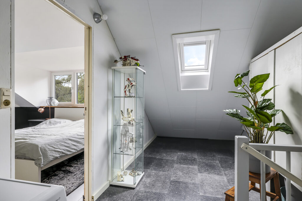 In 2022 is hier een grote dakkapel geplaatst, waardoor er een ruime vierde slaapkamer is ontstaan met veel daglicht en ruimte. Daarnaast vind je op de overloop de opstelling voor wasmachine en droger, en de CV-ketel (Nefit, 2018). Extra prettig: de verdieping is ook voorzien van een airconditioner (2022) voor extra comfort tijdens warme zomerdagen en verwarming in de winter.