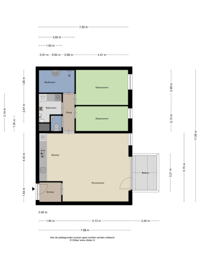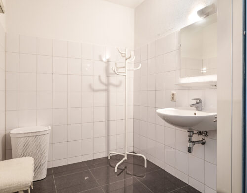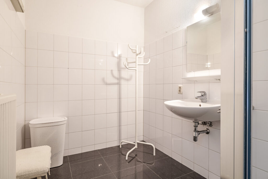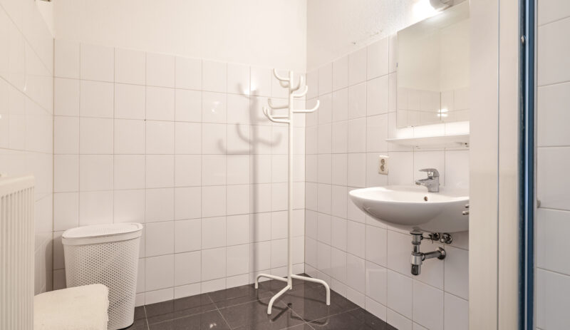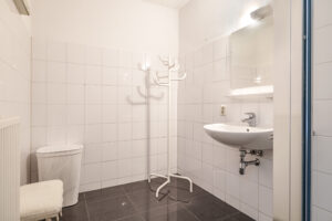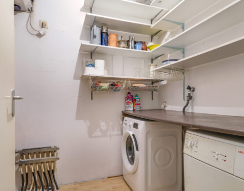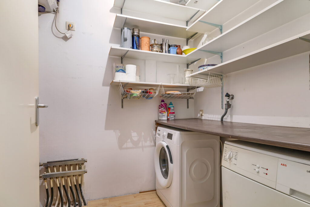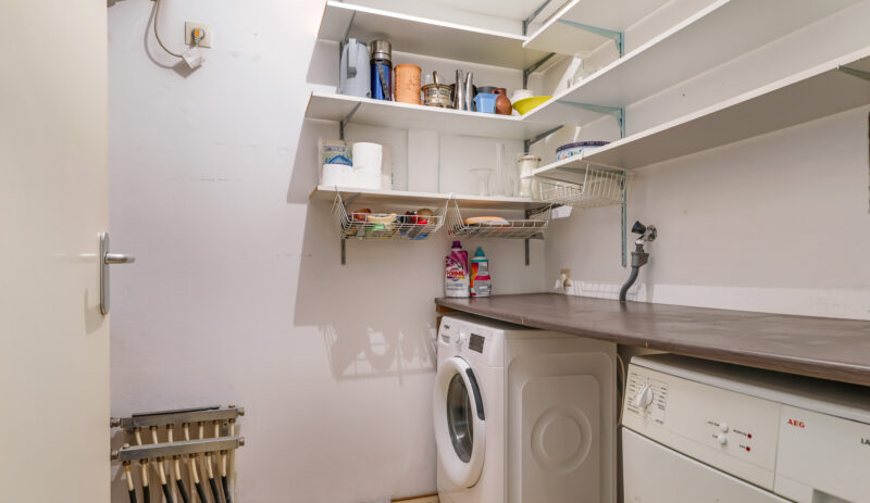Bij binnenkomst in het appartement valt direct de ruime hal op, voorzien van een moderne laminaatvloer. Vanuit deze hal zijn de woonkamer en de keuken bereikbaar. Aan de andere zijde van het appartement bevinden zich het toilet met fontein, de wasruimte, de badkamer en de twee slaapkamers.