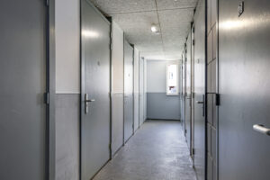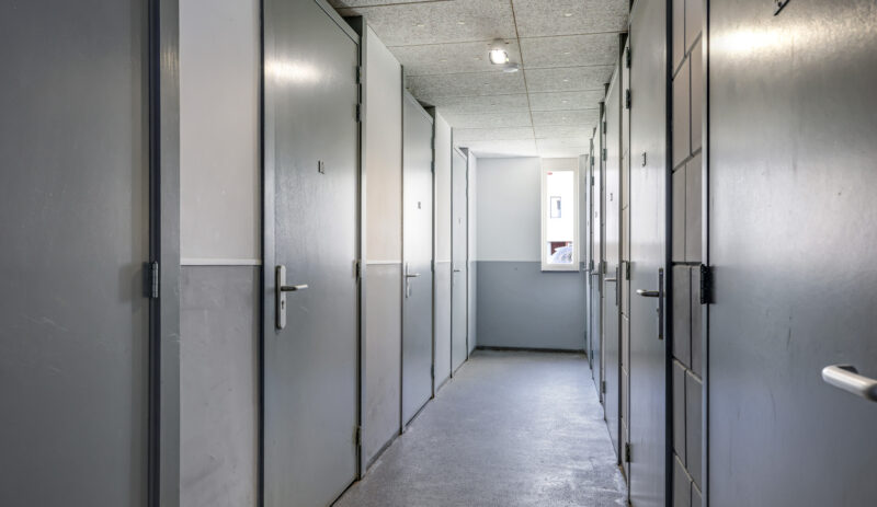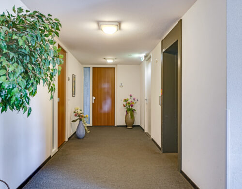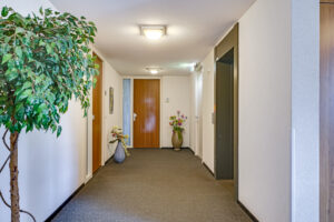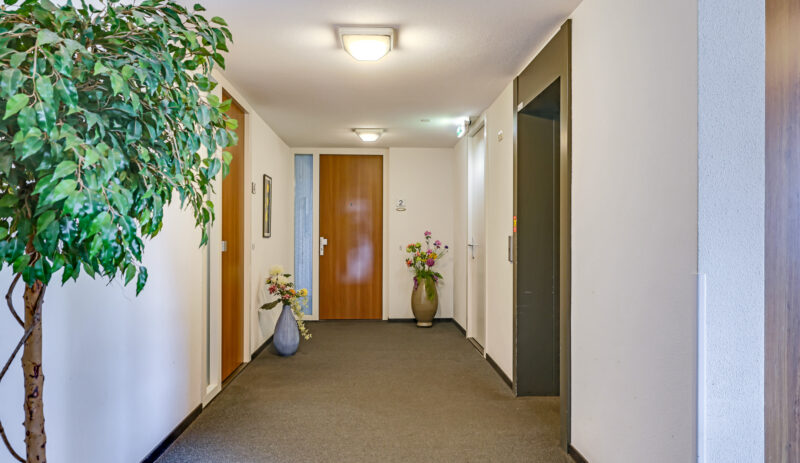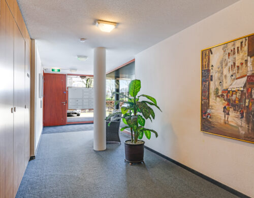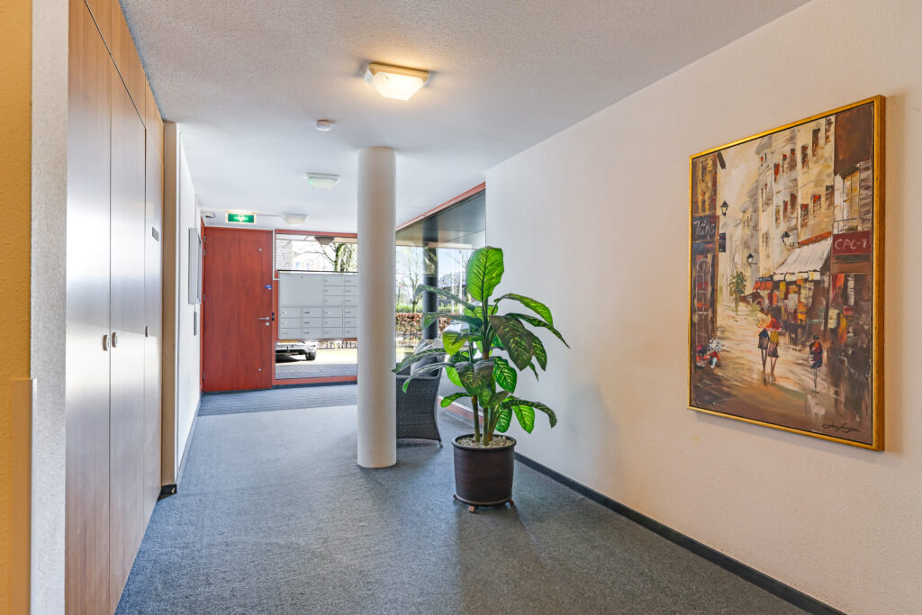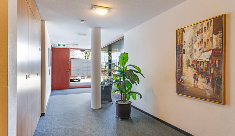 nette centrale entree met toegang tot de lift en het trappenhuis.