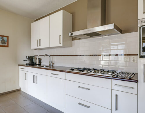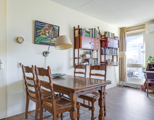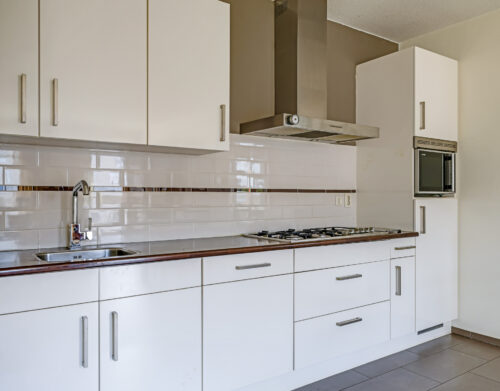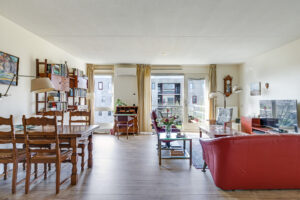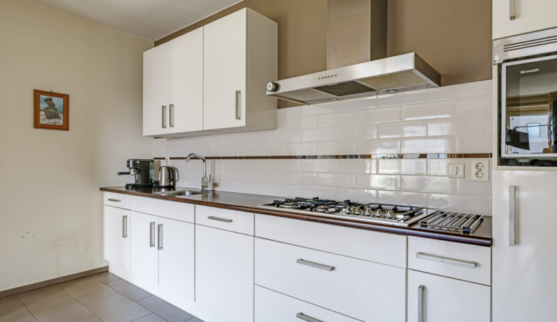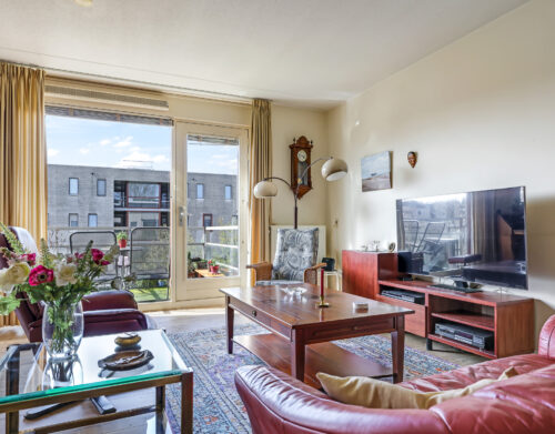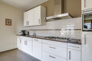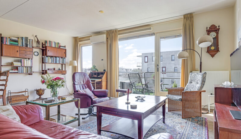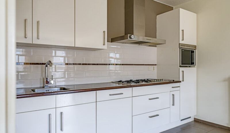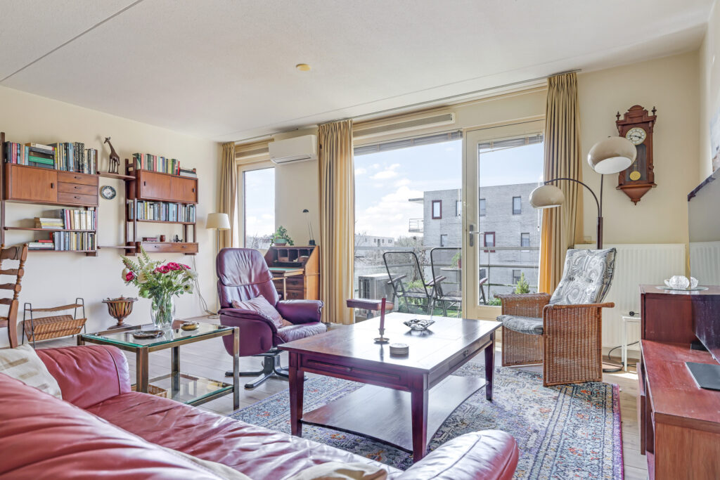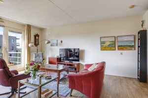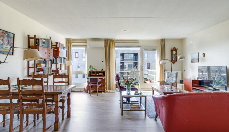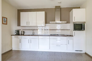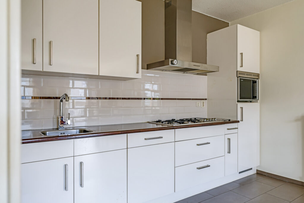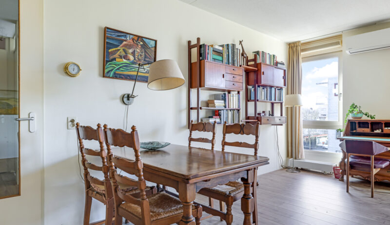 De ruime en lichte woonkamer met open keuken (2006) vormt het hart van het appartement. De keuken is modern uitgevoerd en voorzien van diverse inbouwapparatuur, waaronder een vaatwasser, gaskookplaat, koelkast en afzuigkap. De grote raampartijen zorgen voor een aangename hoeveelheid daglicht, waardoor de ruimte extra ruim en sfeervol aanvoelt. Vanuit de woonkamer heb je direct toegang tot het zonnige balkon, gelegen op het zuidwesten.