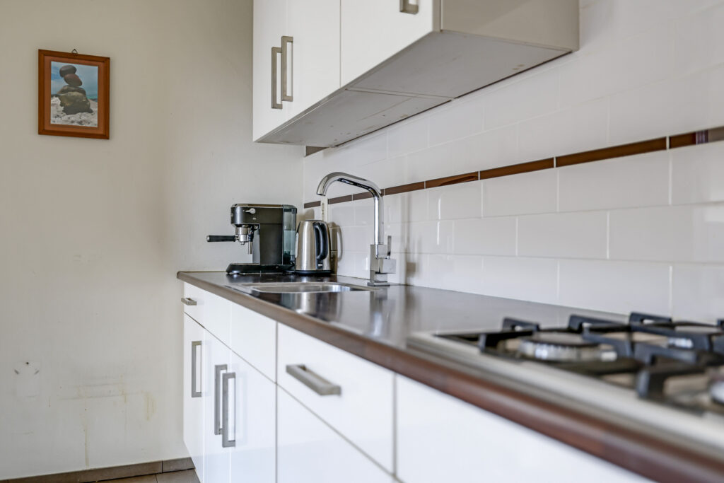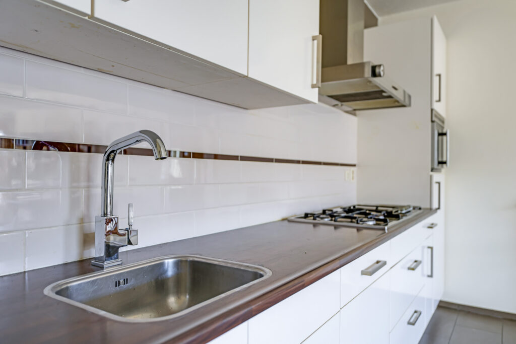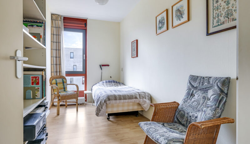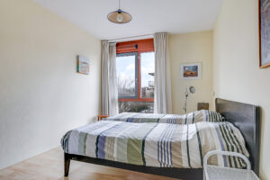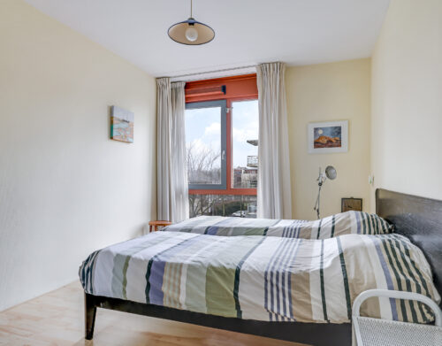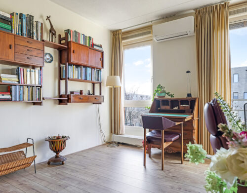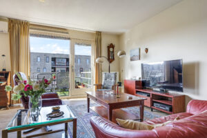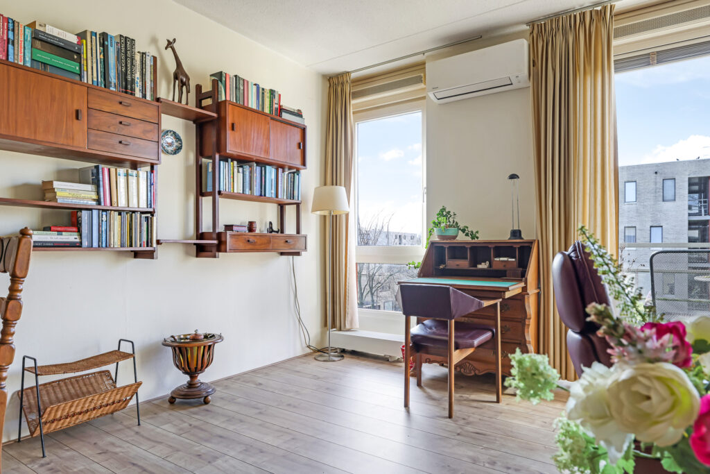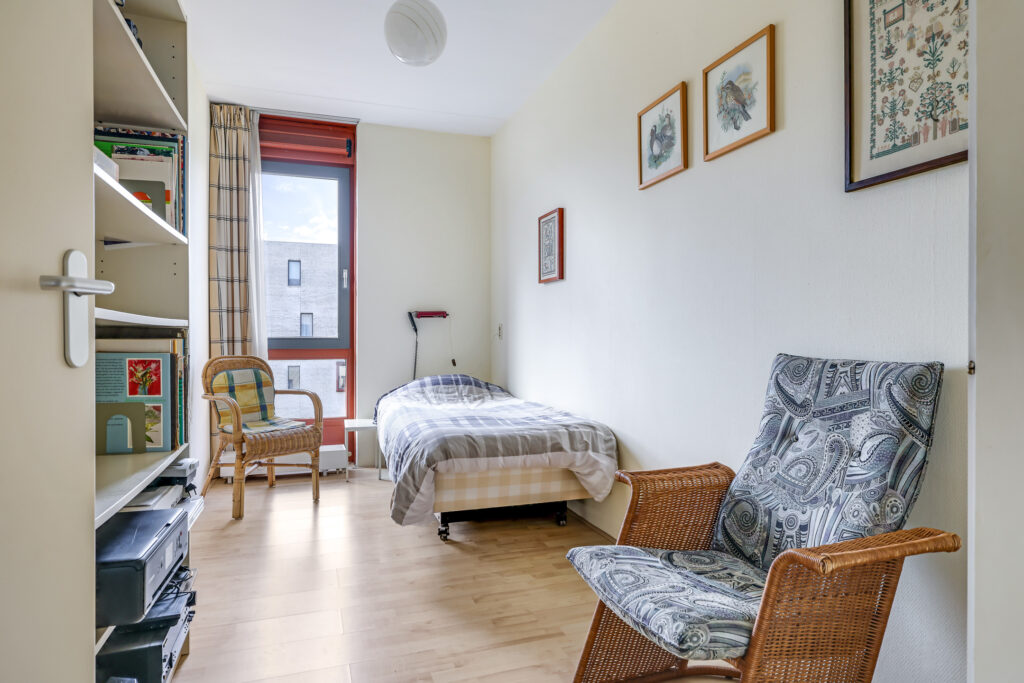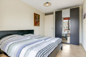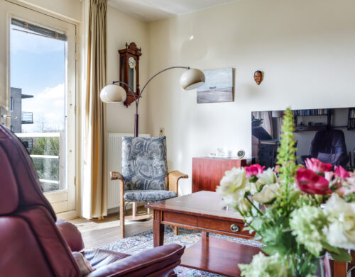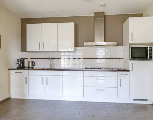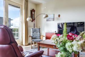 De ruime en lichte woonkamer met open keuken (2006) vormt het hart van het appartement. De keuken is modern uitgevoerd en voorzien van diverse inbouwapparatuur, waaronder een vaatwasser, gaskookplaat, koelkast en afzuigkap. De grote raampartijen zorgen voor een aangename hoeveelheid daglicht, waardoor de ruimte extra ruim en sfeervol aanvoelt. Vanuit de woonkamer heb je direct toegang tot het zonnige balkon, gelegen op het zuidwesten.