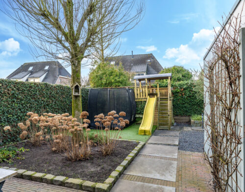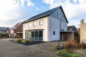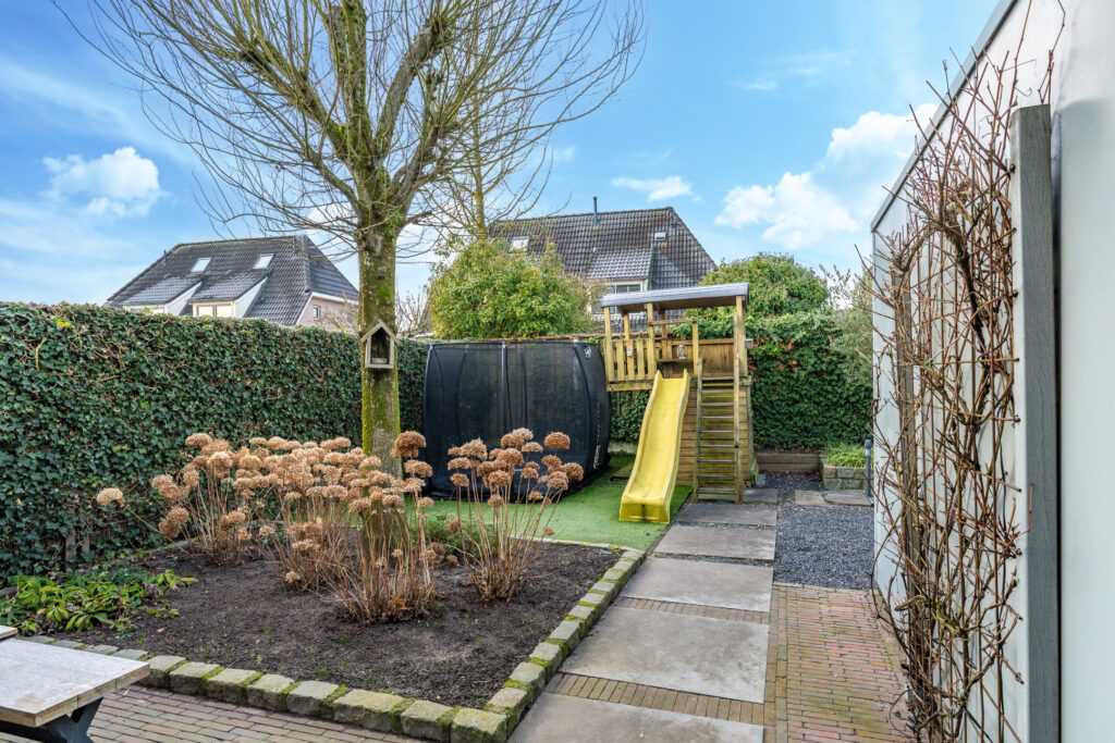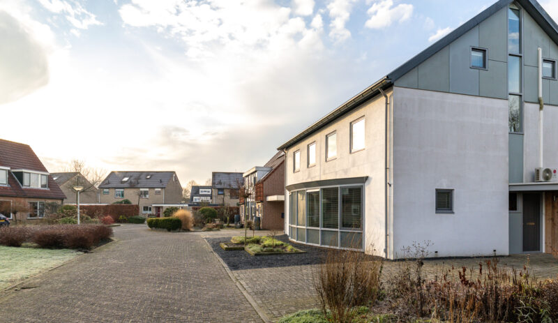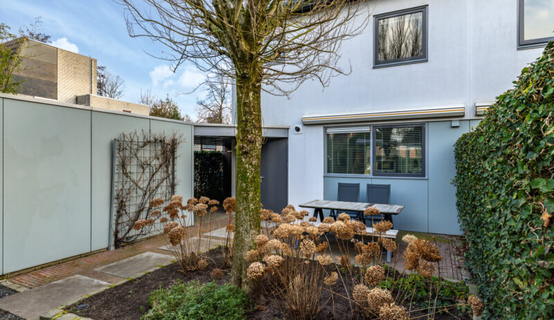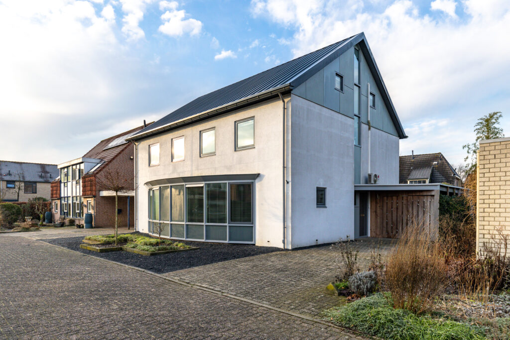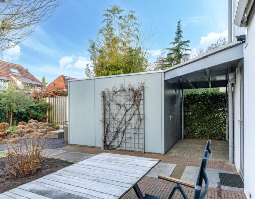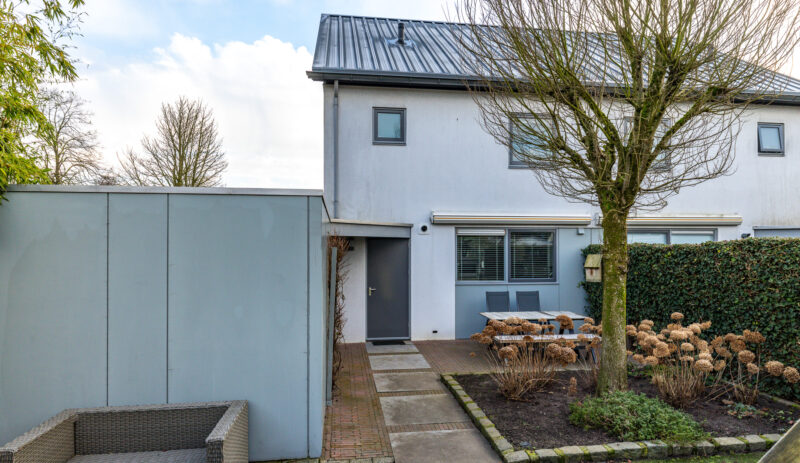 Op een geliefde en rustige locatie, aan een autoluw hofje, ligt deze ruime en energiezuinige twee-onder-een-kapwoning met eigen oprit, carport, vrijstaande berging en een zonnige achtertuin op het zuidwesten.