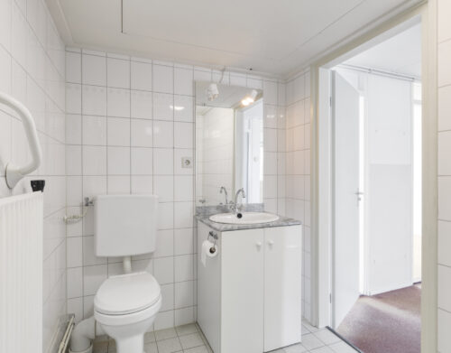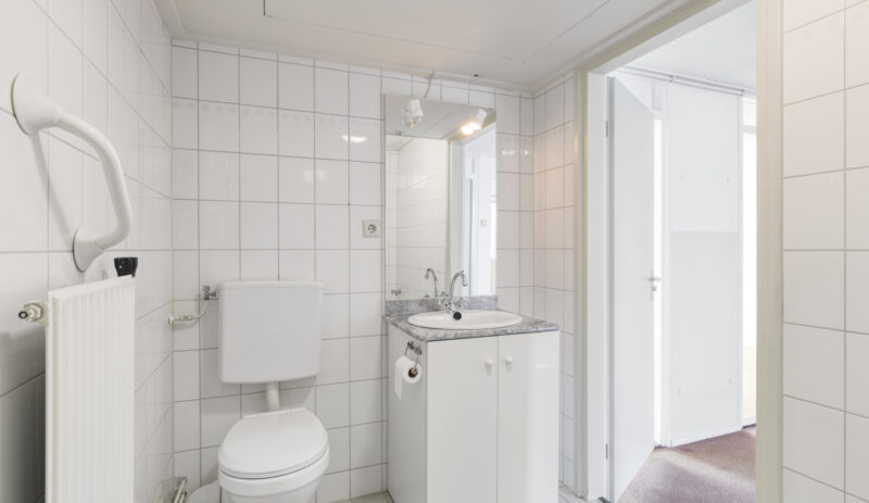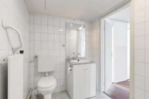 De badkamer is afgewerkt in lichte tinten en beschikt over een douche, tweede toilet en een wastafelmeubel. Daarnaast vind je op deze verdieping een technische ruimte met de CV-installatie en een separate wasruimte met aansluitingen voor de wasmachine.