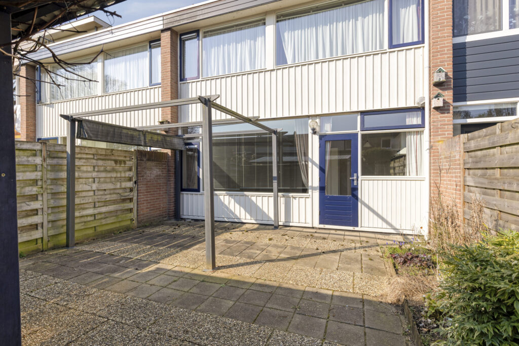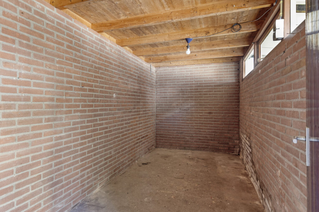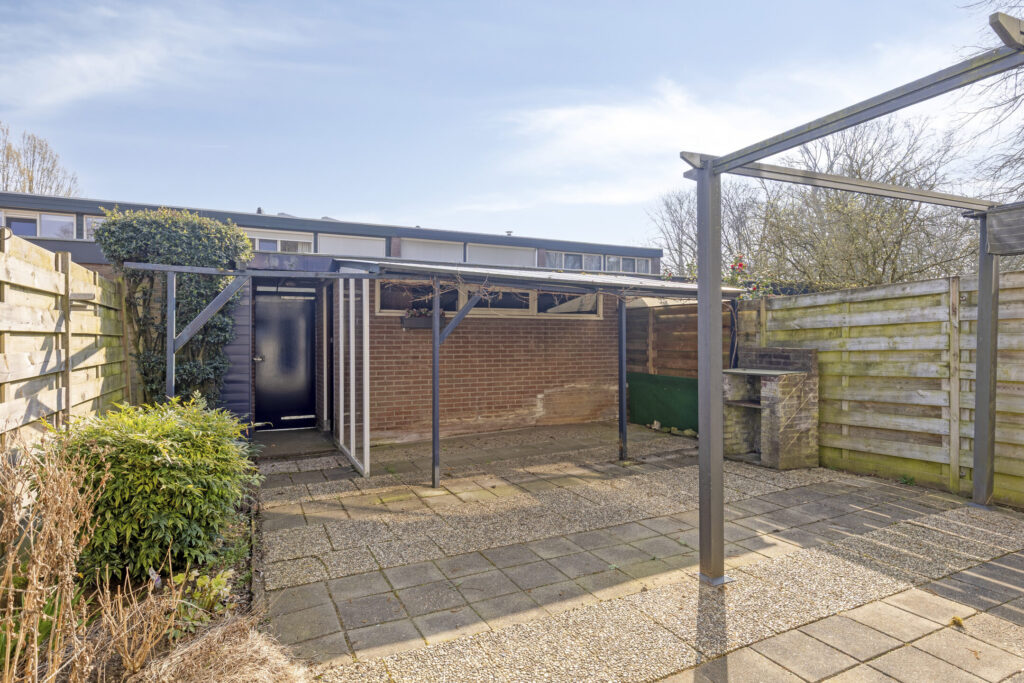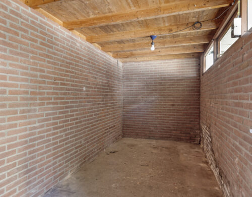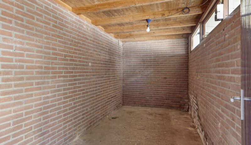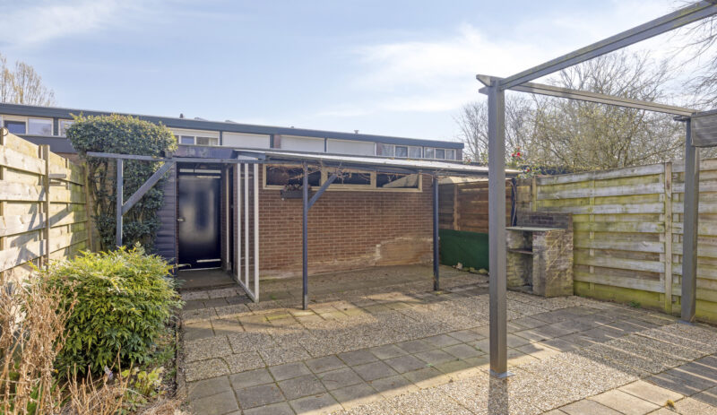 De achtertuin is beschut en gelegen op het oosten, waardoor je hier al vroeg op de dag van de zon kunt genieten. Via een achterom is de tuin eenvoudig bereikbaar. Achterin staat een stenen berging met elektra – ideaal voor fietsen en tuinspullen.