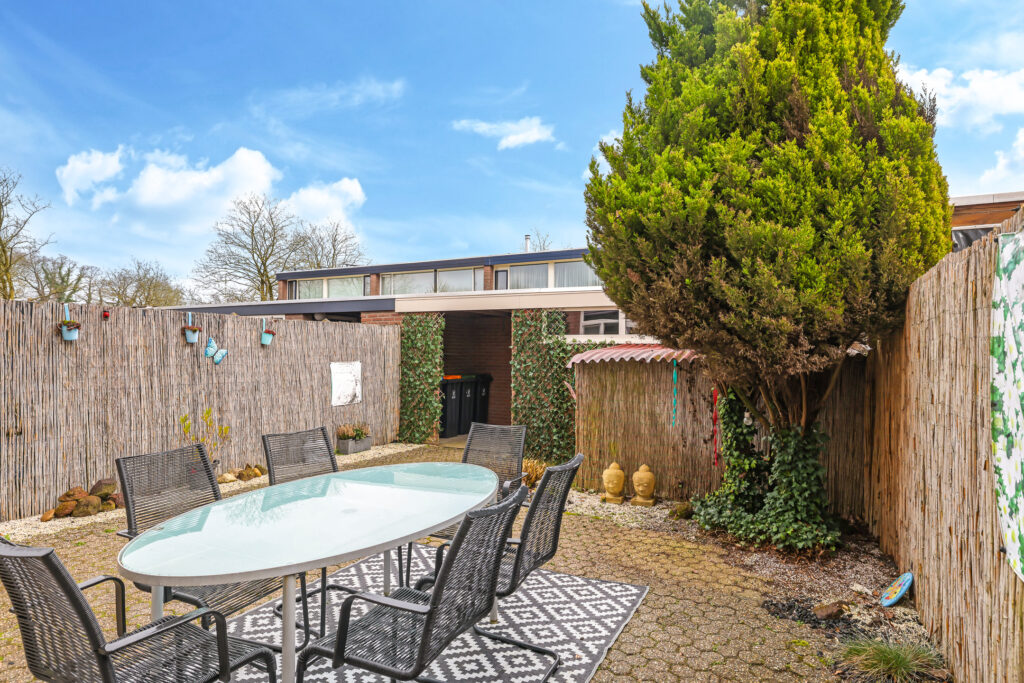 De achtertuin is volledig omsloten en gelegen op het oosten, waardoor je hier ’s ochtends en in de vroege middag al heerlijk van de zon kunt genieten. Via een achterpad is de tuin bereikbaar middels een kunststof deur. Achterin de tuin staat een stenen berging voorzien van elektra en kunststof kozijnen – ideaal voor het stallen van fietsen of het opbergen van tuingereedschap.