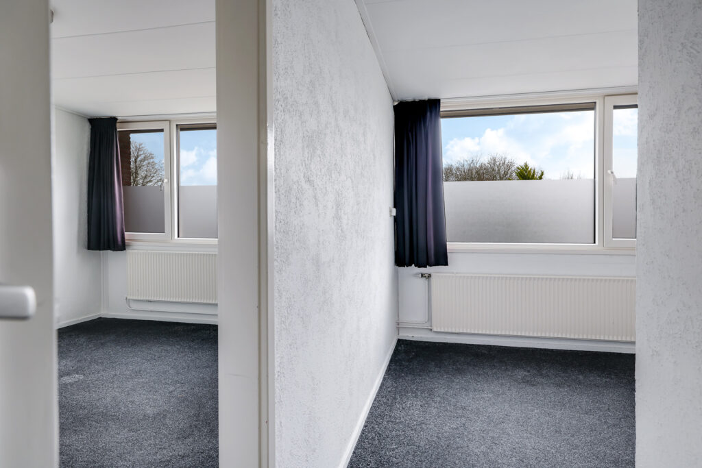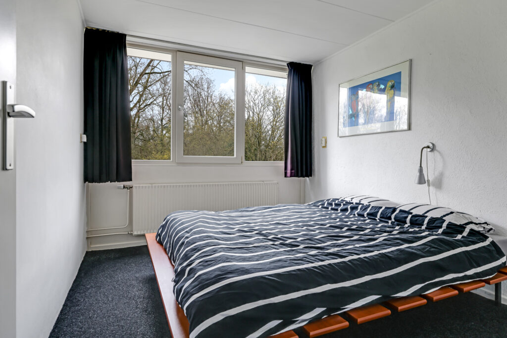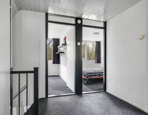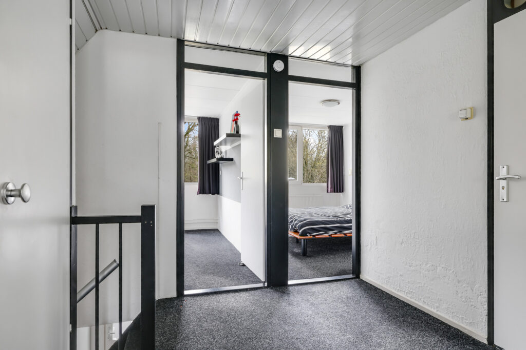 De overloop geeft toegang tot drie slaapkamers (oorspronkelijk vier). In het verleden zijn twee slaapkamers samengevoegd tot een royale slaapkamer met een kastenwand en een aansluitende walk-in closet. Desgewenst is deze indeling weer terug te brengen naar vier slaapkamers.