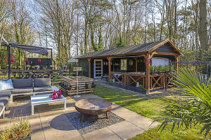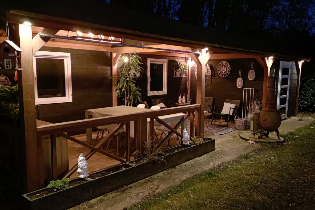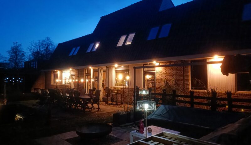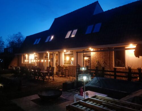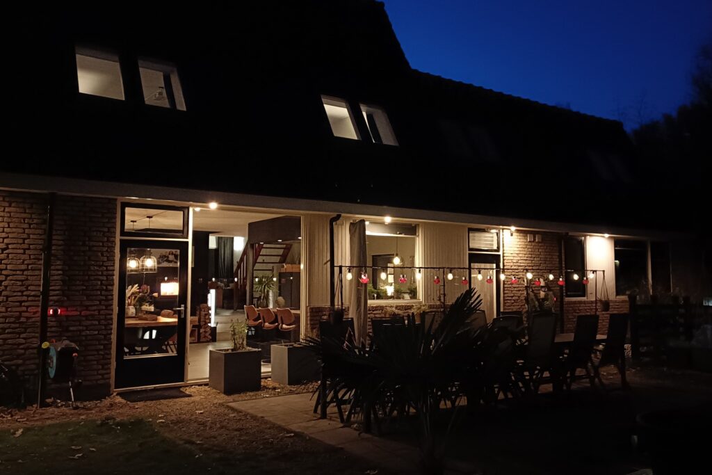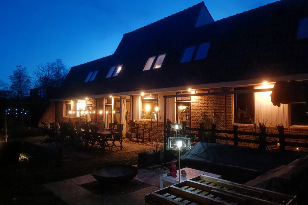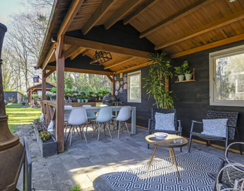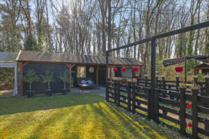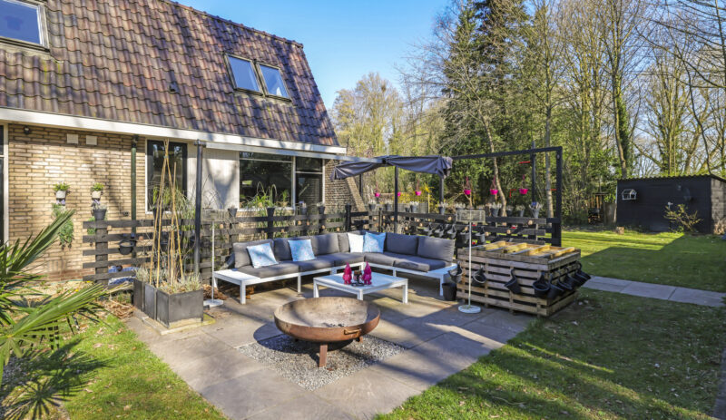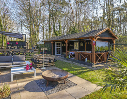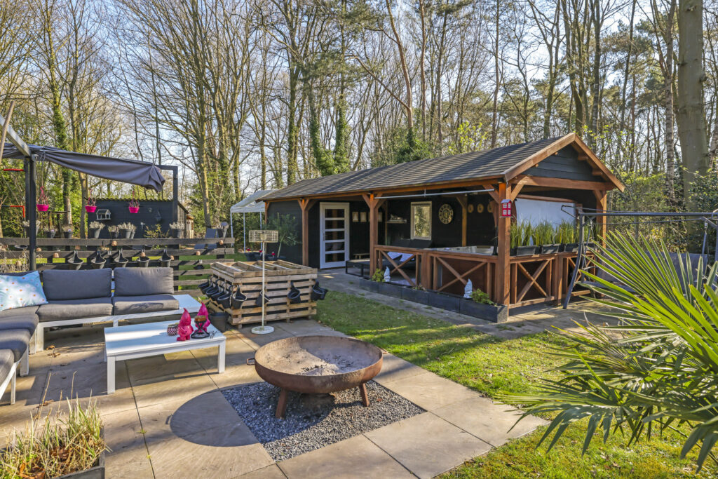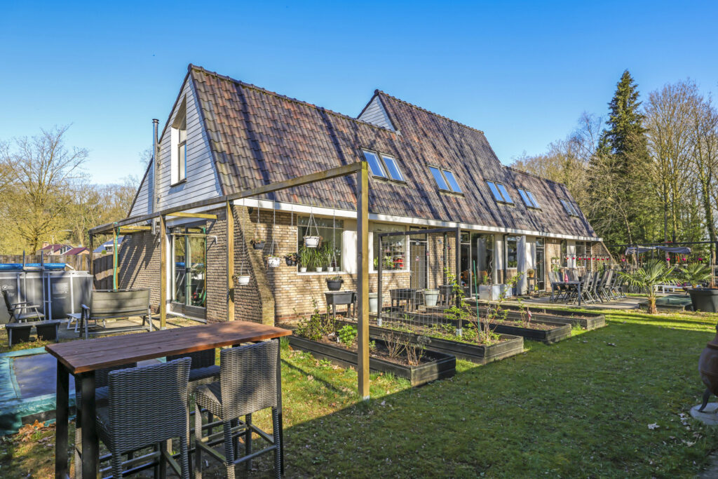 De buitenruimte is veelzijdig ingericht met meerdere terrassen, een speel-/sportveld en moestuinbakken. In 2020 zijn er twee vrijstaande bijgebouwen geplaatst, elk bestaande uit een schuur met aansluitende overkapping. Eén van deze bijgebouwen is ingericht als wellnessruimte (met saunacabine en jacuzzi) – een heerlijke plek om tot rust te komen in eigen tuin.