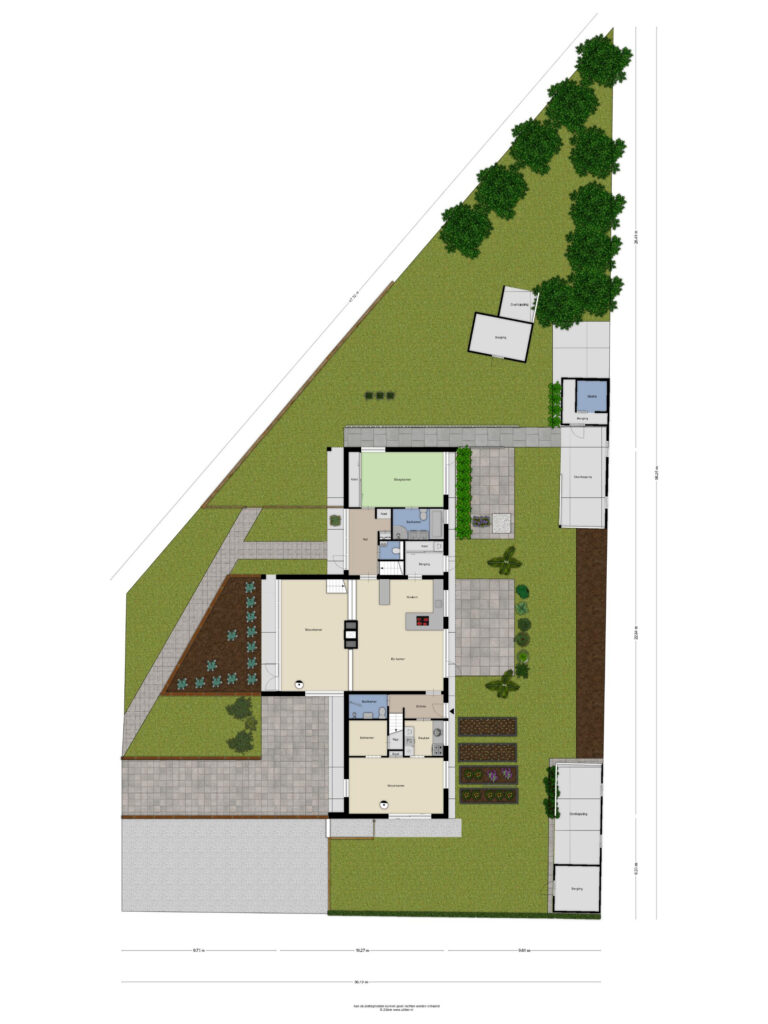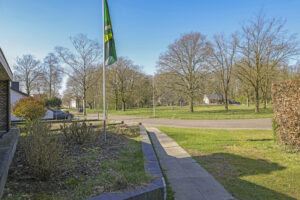 Aan de voorzijde beschikt de woning over een ruime oprit, waar meerdere auto’s comfortabel op eigen terrein geparkeerd kunnen worden.