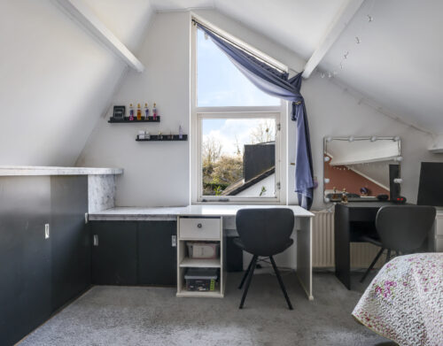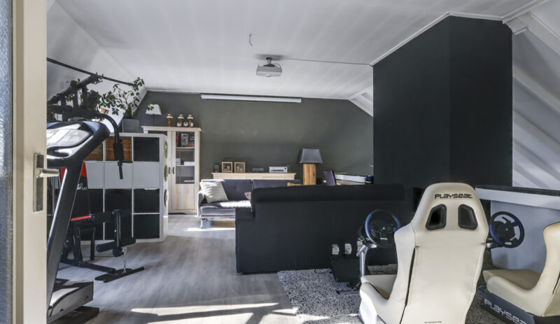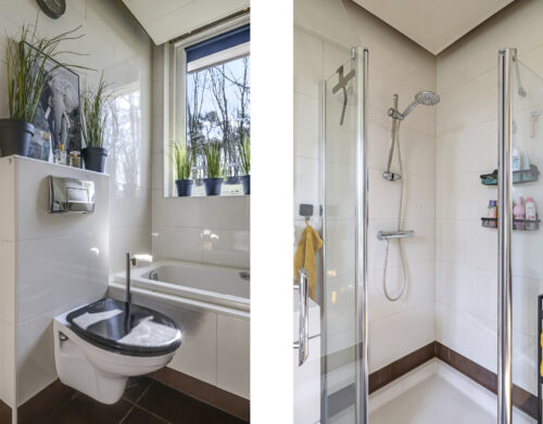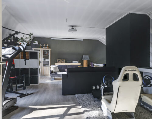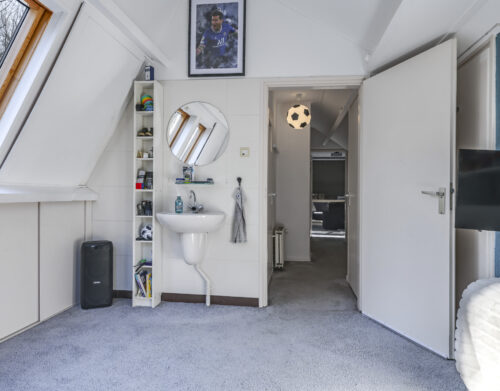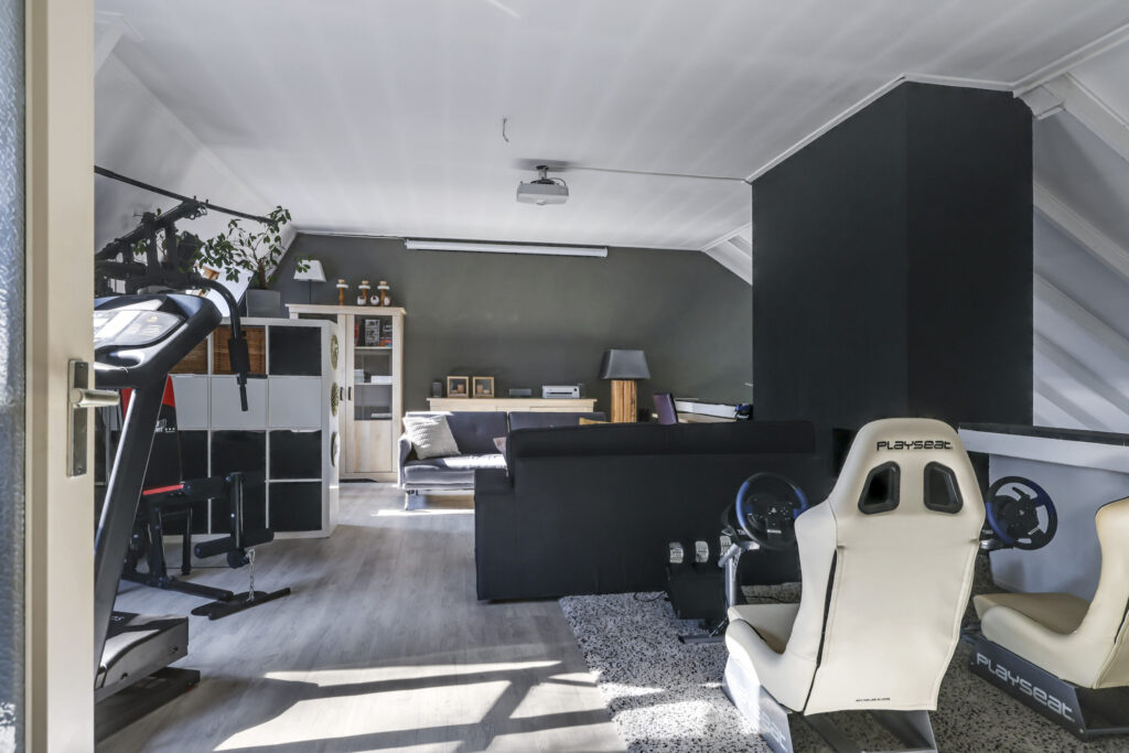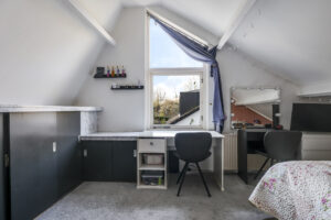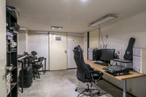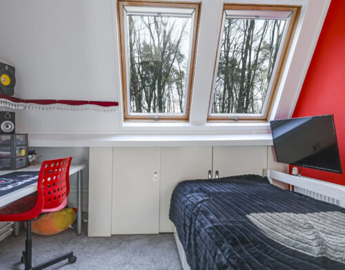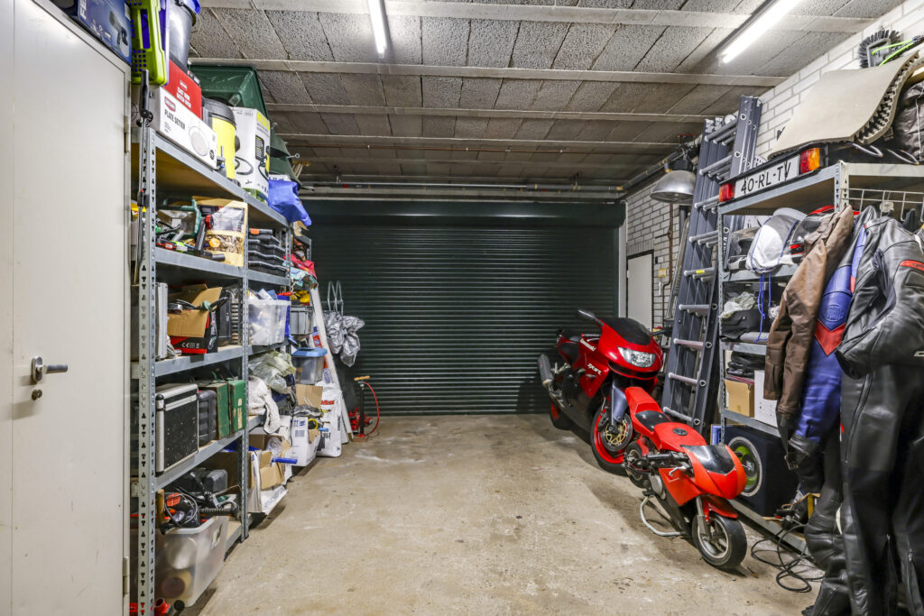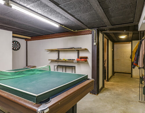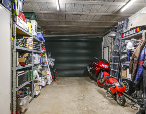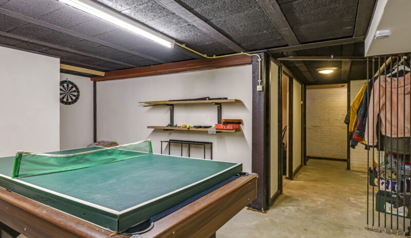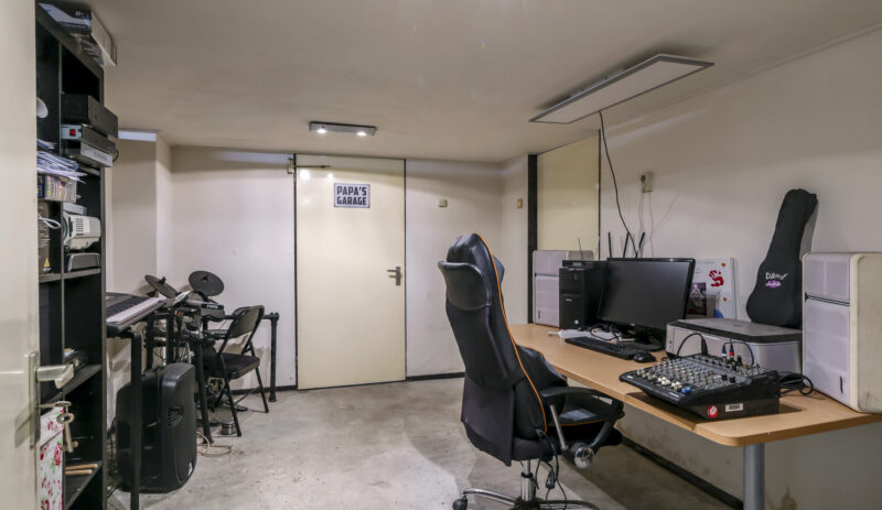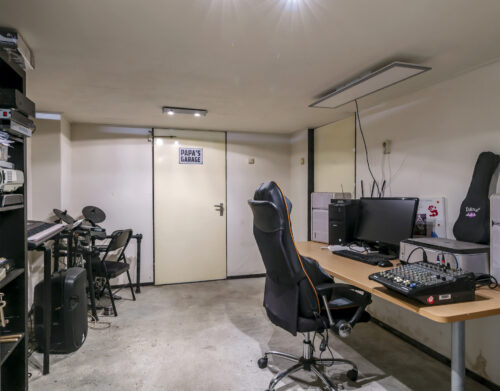 De woning beschikt over een zeer ruime onderverdieping met een cv-ruimte, twee grote bergingen en een inpandige garage met elektrische roldeur. Ideaal voor hobby’s, opslag of het veilig parkeren van uw auto.