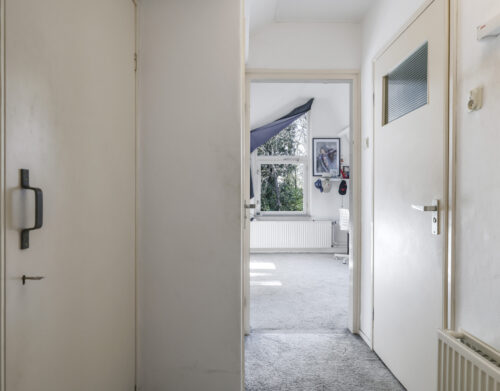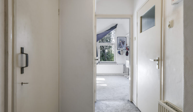 Overloop met toegang tot twee slaapkamers, beiden voorzien van vaste kasten.