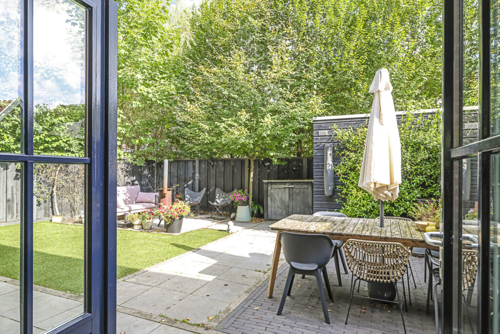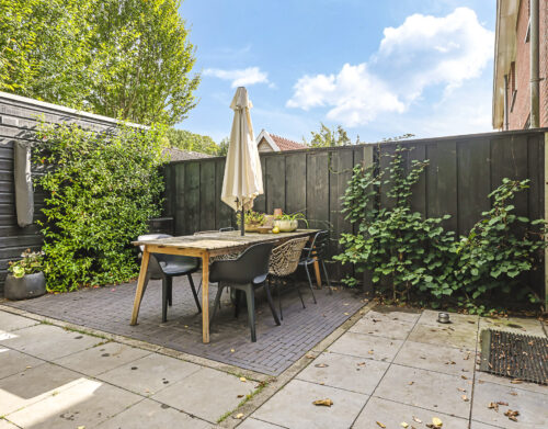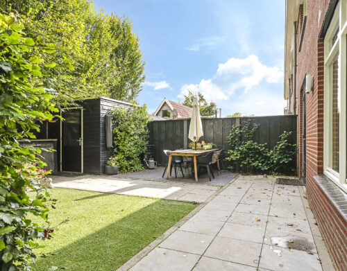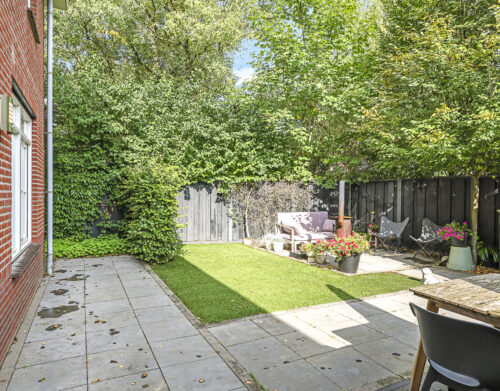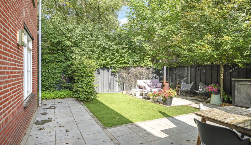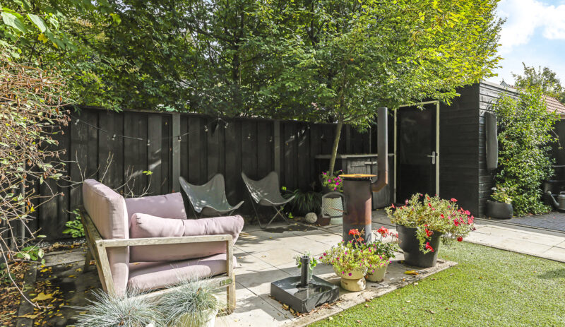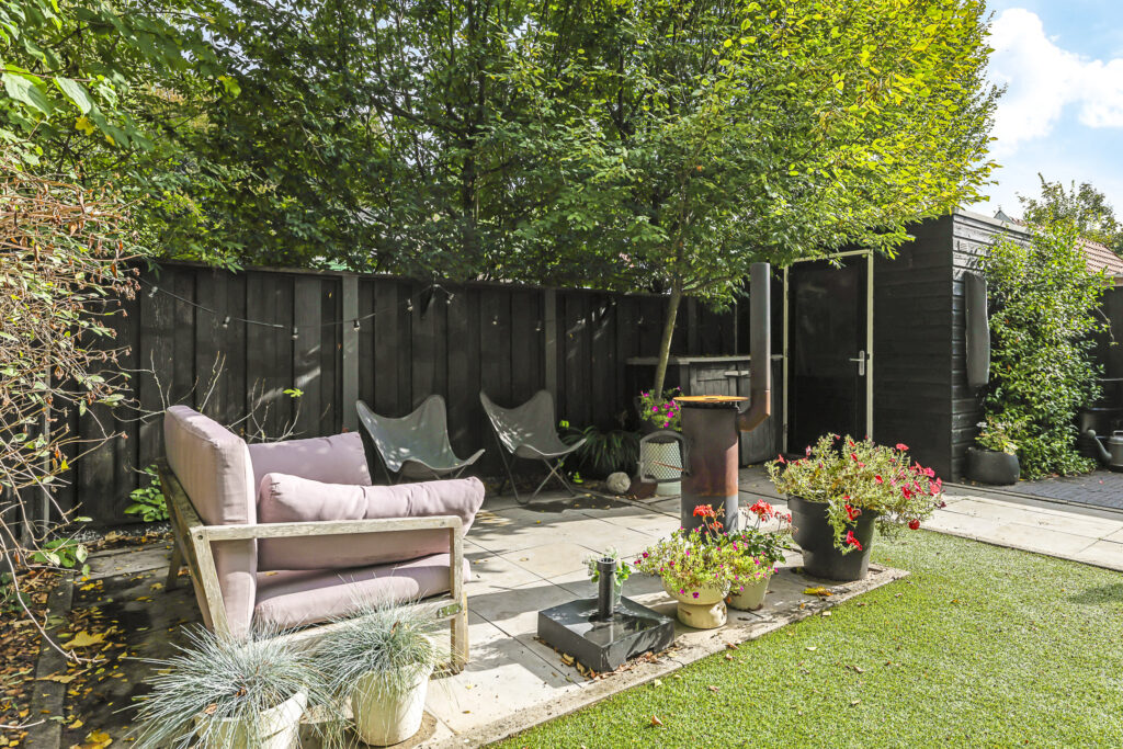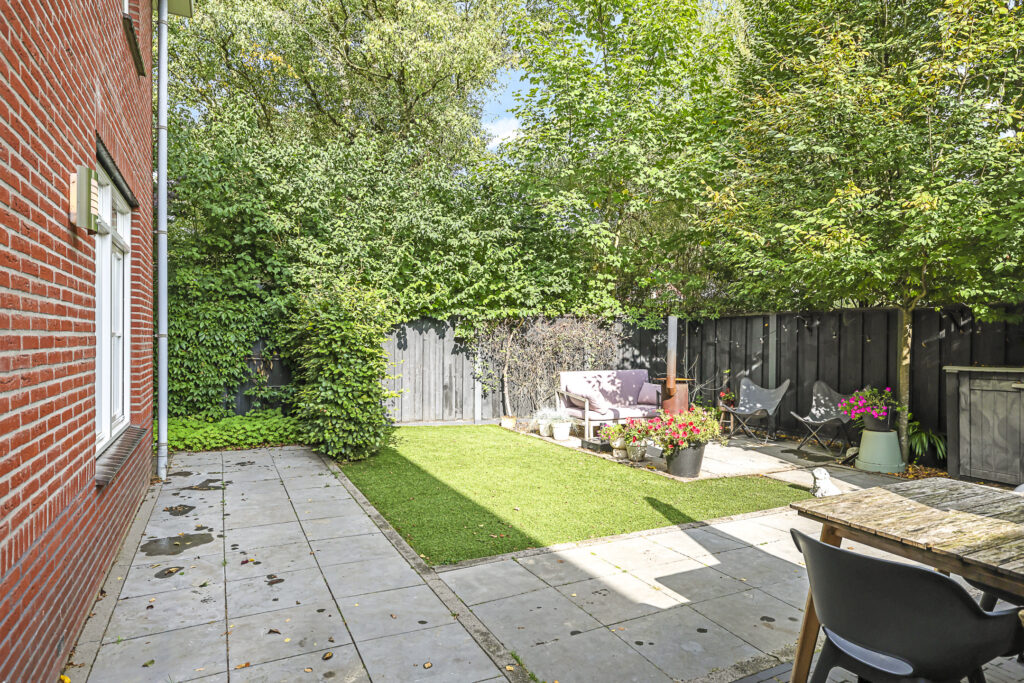 De achtertuin is een heerlijke plek om buiten te zijn: geheel omsloten, onderhoudsvriendelijk ingericht en met volop privacy. Er zijn twee terrassen, een stukje kunstgras en een houten berging voor fietsen en tuingereedschap. Je kijkt er bovendien uit op het groen van de omliggende bomen – alsof je midden in de natuur woont!