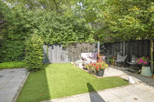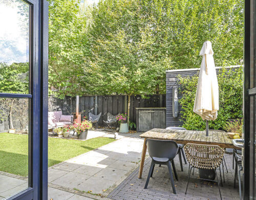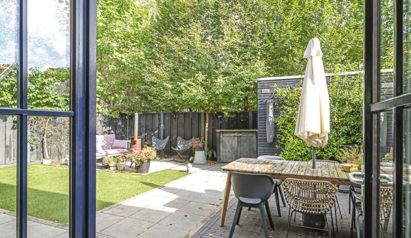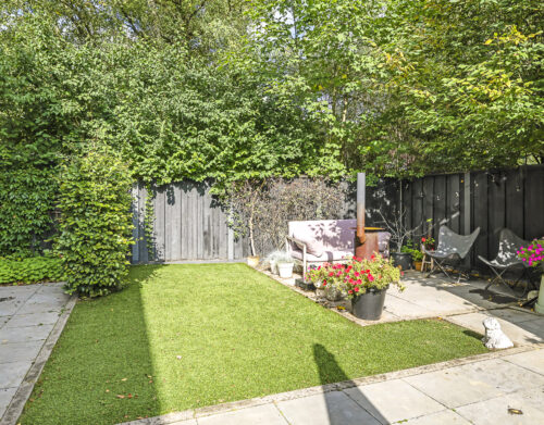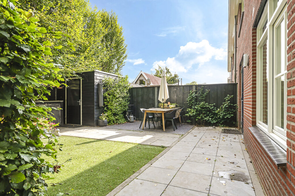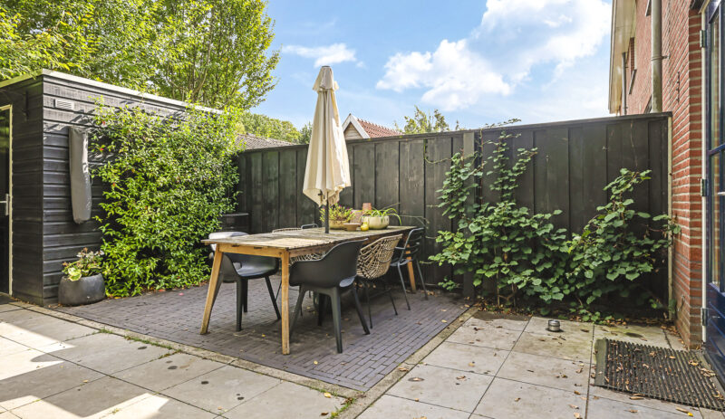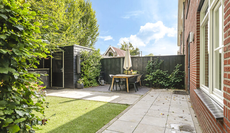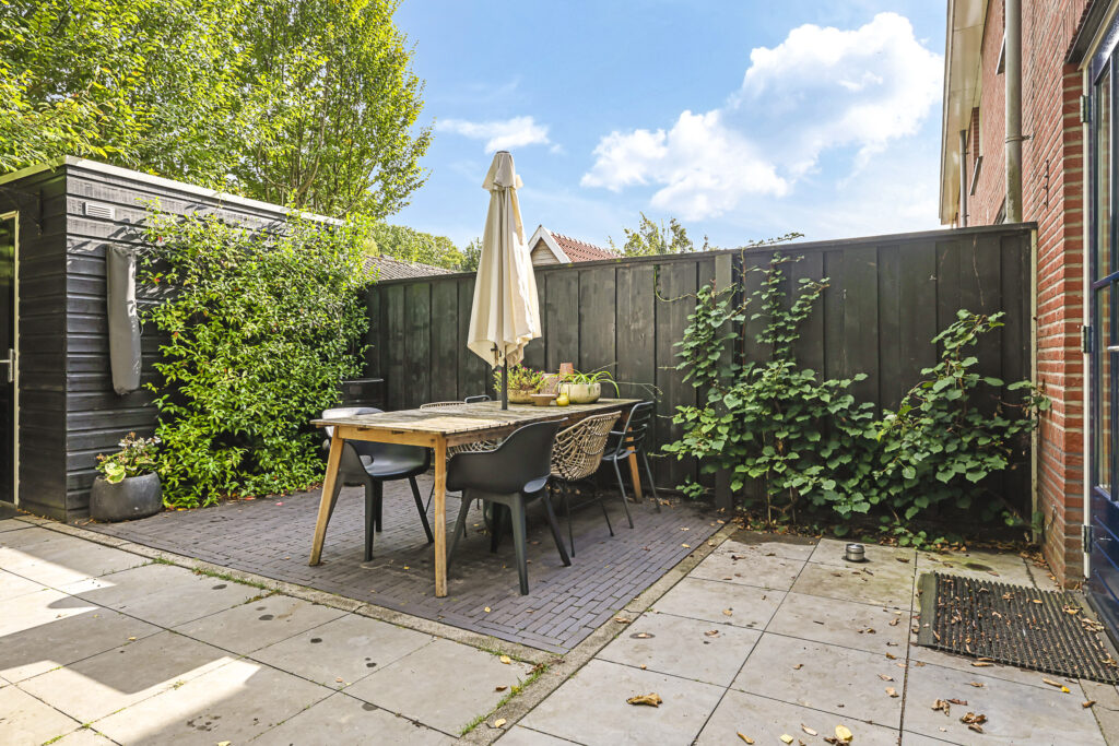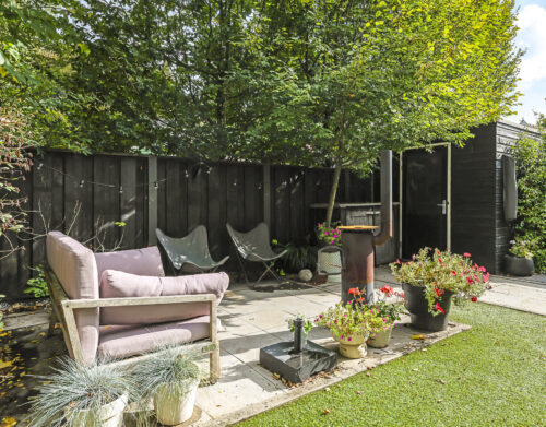 De achtertuin is een heerlijke plek om buiten te zijn: geheel omsloten, onderhoudsvriendelijk ingericht en met volop privacy. Er zijn twee terrassen, een stukje kunstgras en een houten berging voor fietsen en tuingereedschap. Je kijkt er bovendien uit op het groen van de omliggende bomen – alsof je midden in de natuur woont!
