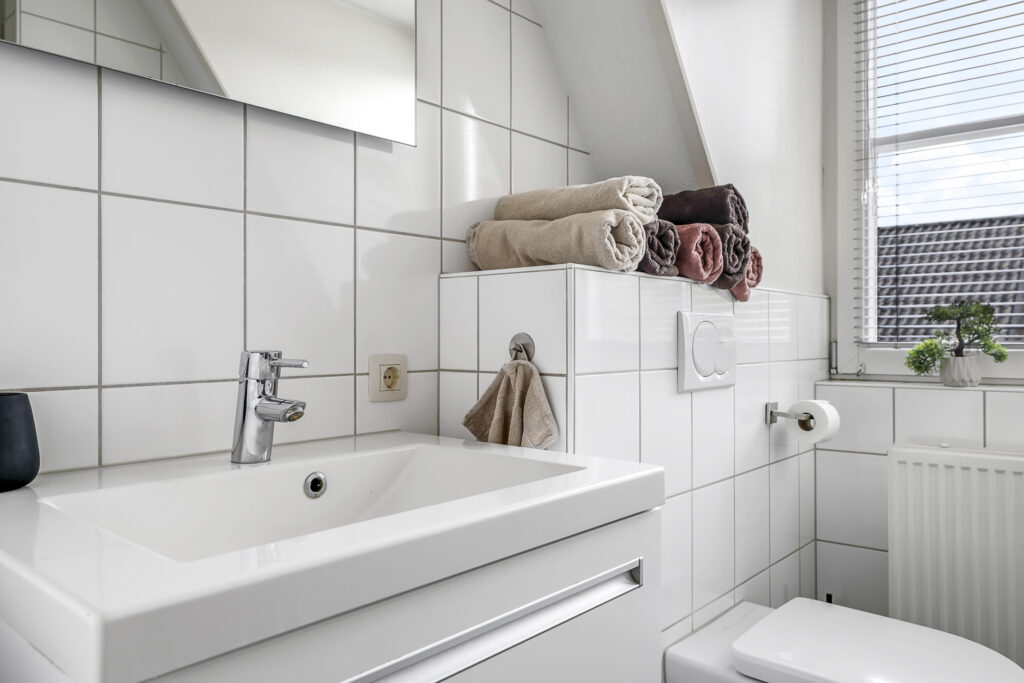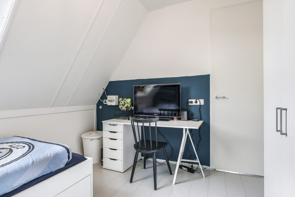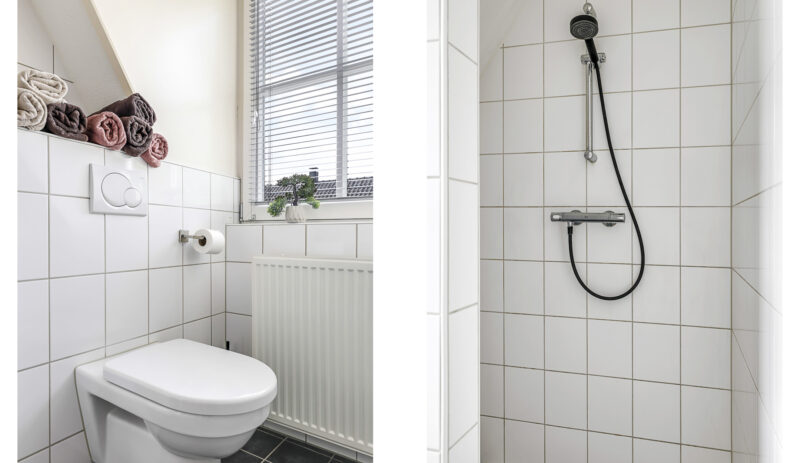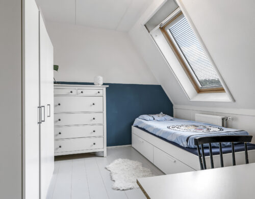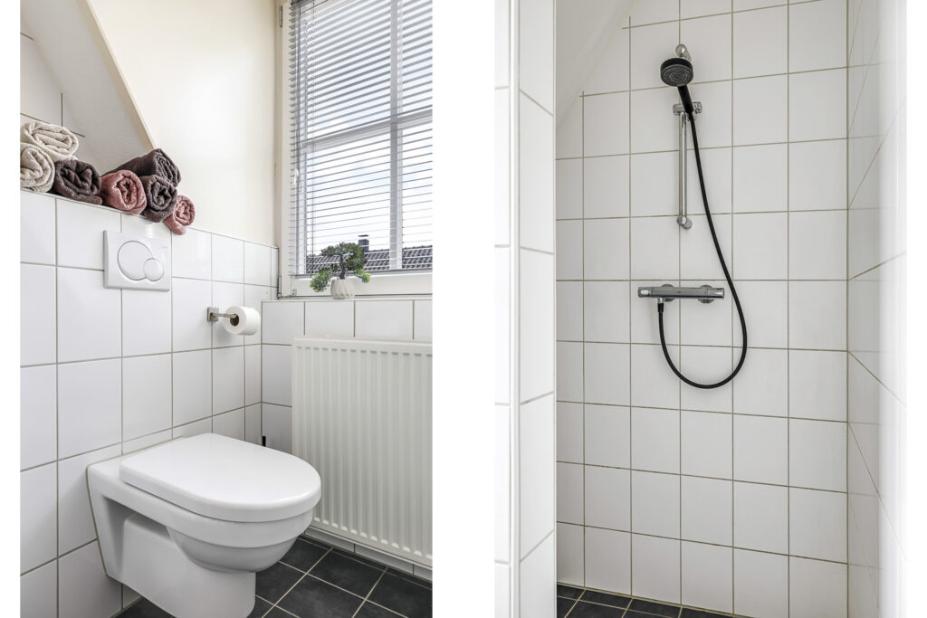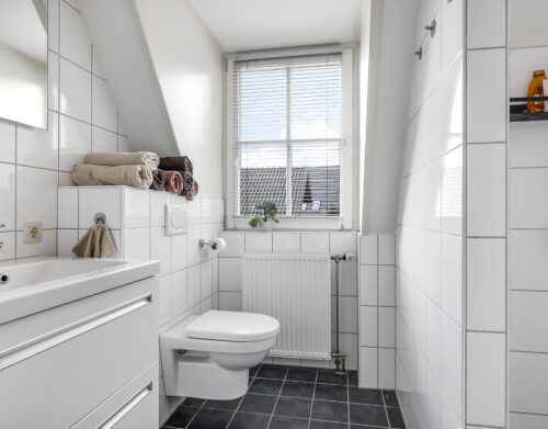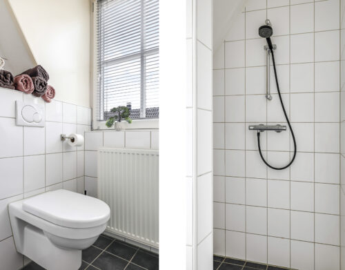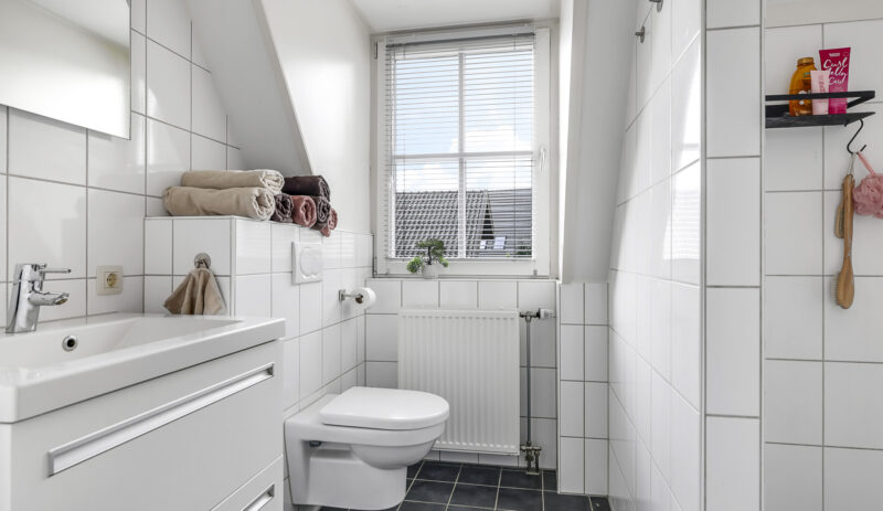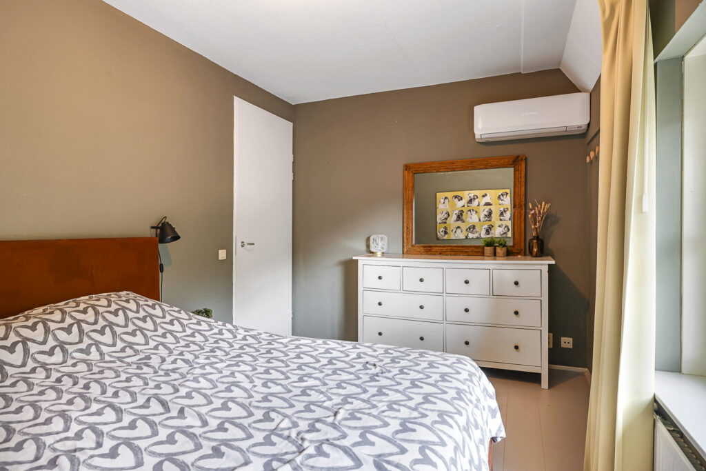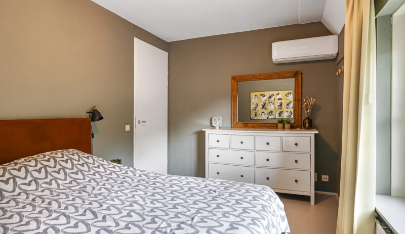 Boven zijn drie slaapkamers, waarvan de ouderslaapkamer is uitgerust met een eigen airco. De slaapkamers zijn afgewerkt met een keurige laminaatvloer die drempelloos s doorgelegd. De badkamer is modern en licht, met een inloopdouche, wastafelmeubel en tweede toilet. En dankzij de ruime bergzolder heb je altijd genoeg plek voor seizoensspullen.