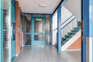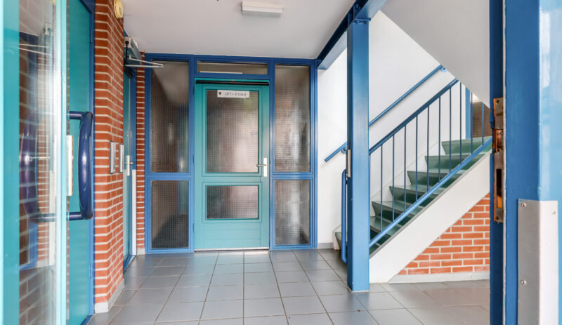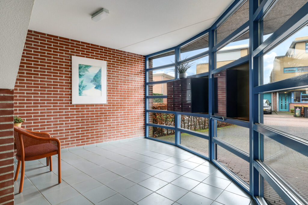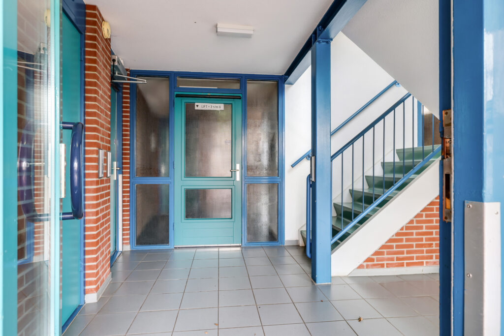 Via de beveiligde entree met bellentableau en videofooninstallatie kom je in de centrale hal met postbussen en toegang tot de privébergingen. Zowel per lift als per trap bereik je de verdieping. Op de begane grond beschik je over een eigen (fietsen)berging.