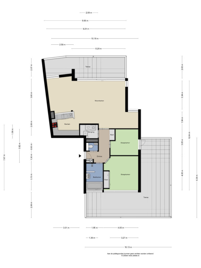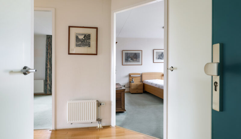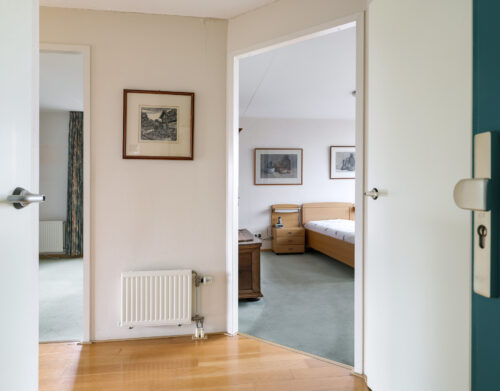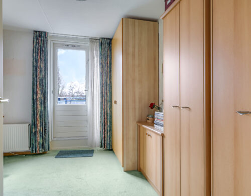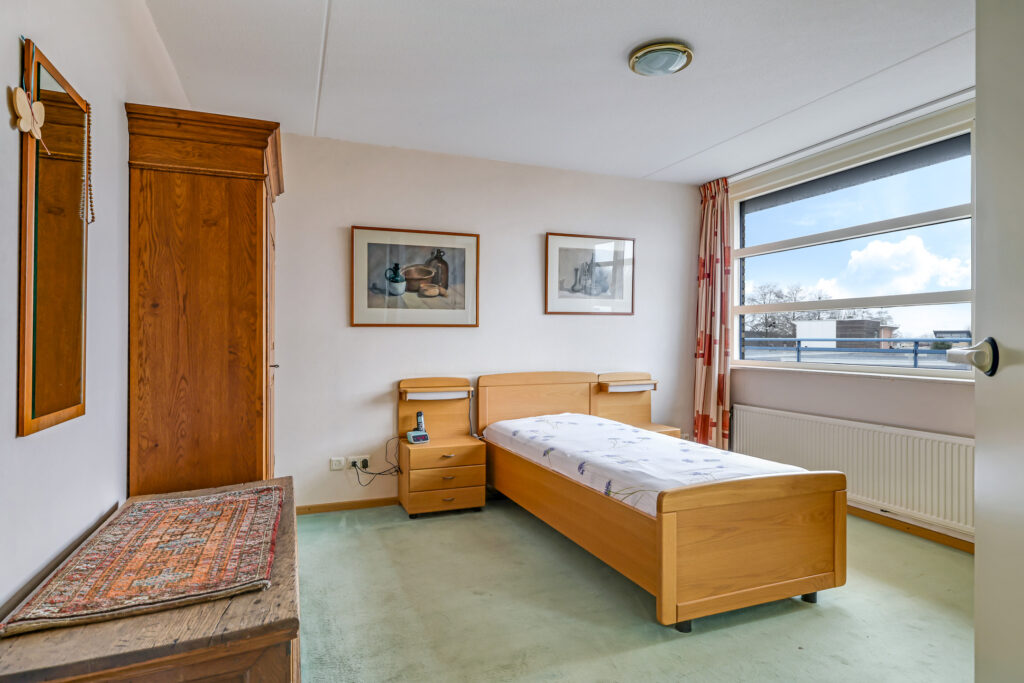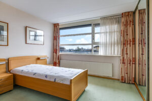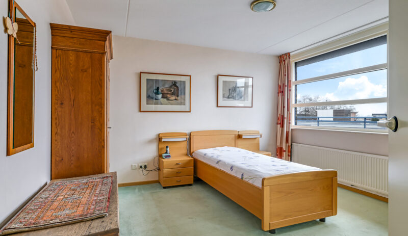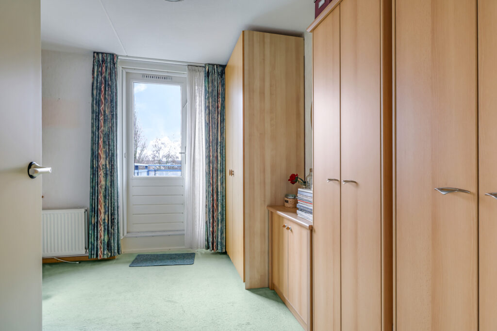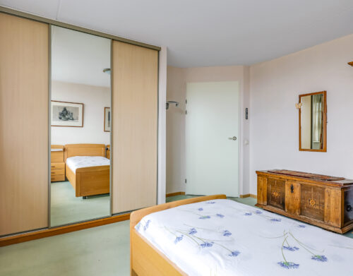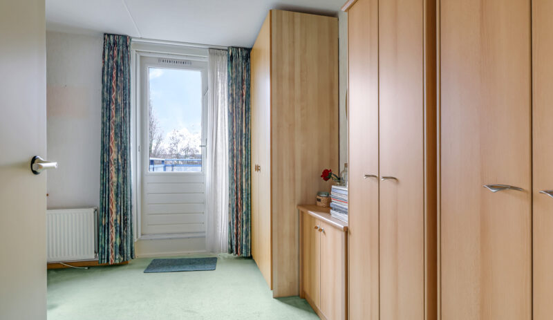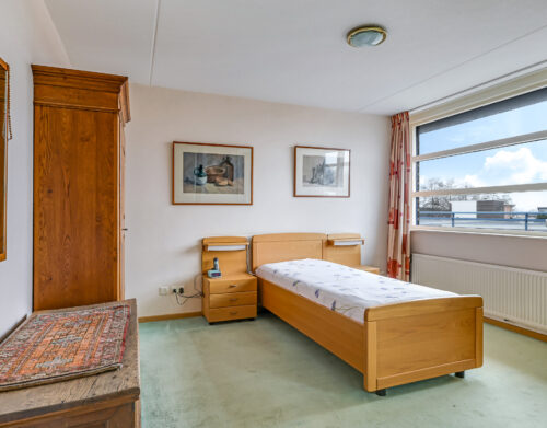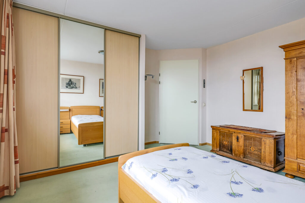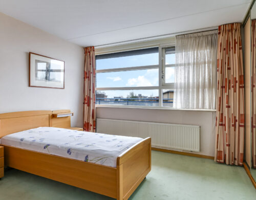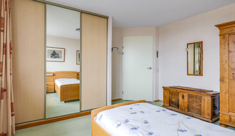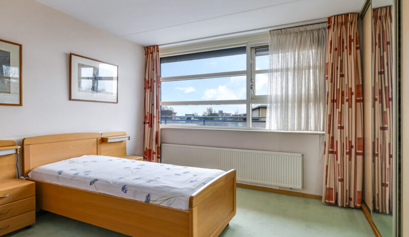 Het appartement beschikt over twee slaapkamers. De ouderslaapkamer is voorzien van een vaste kast. De tweede slaapkamer biedt toegang tot het grootste dakterras, gesitueerd op het zuidoosten. Dankzij de verschillende liggingen van de terrassen kun je gedurende de hele dag kiezen tussen zon en schaduw – een zeldzame luxe bij wonen in een appartement.