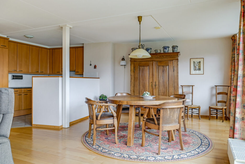 De binnenafwerking dateert grotendeels uit het bouwjaar; hiermee is in de prijsstelling reeds rekening gehouden. Voor wie de kans ziet om het geheel naar eigen smaak te moderniseren, ligt hier een prachtig fundament.