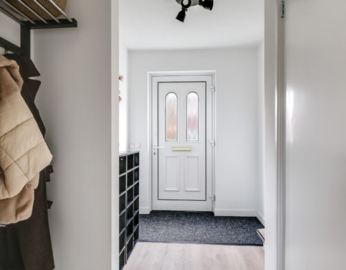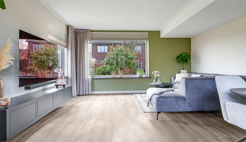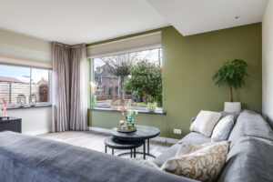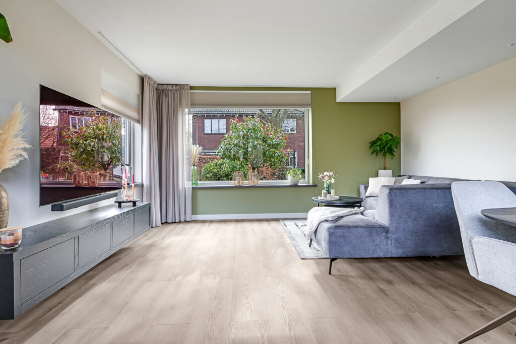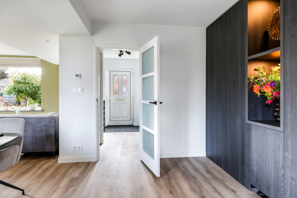 Via de entree/hal met garderobenis bereikt u de woonkamer. De ruimte is licht door de ramen aan drie zijden van de woning en biedt een prettige woonbeleving.