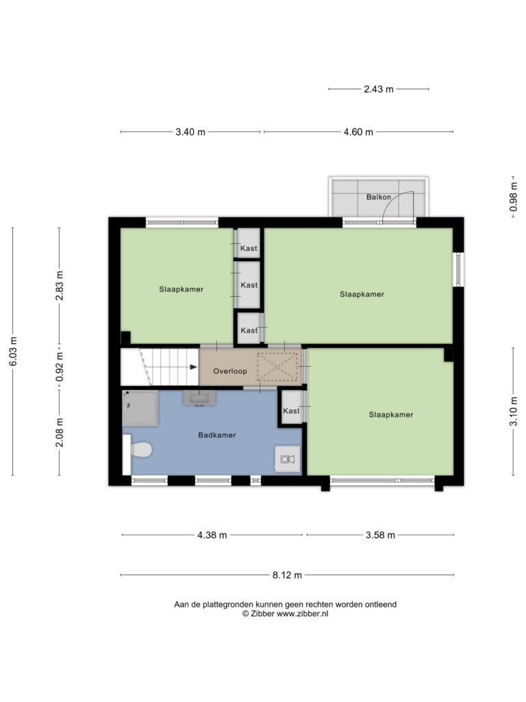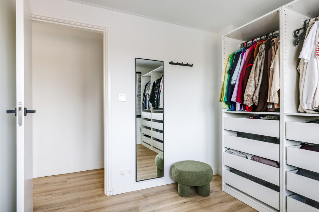 Op de eerste verdieping bevinden zich drie ruime slaapkamers, alle voorzien van vaste kasten. De kamers bieden voldoende gebruiksmogelijkheden als slaapkamer, werkruimte of logeerkamer.
