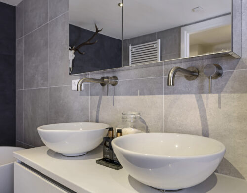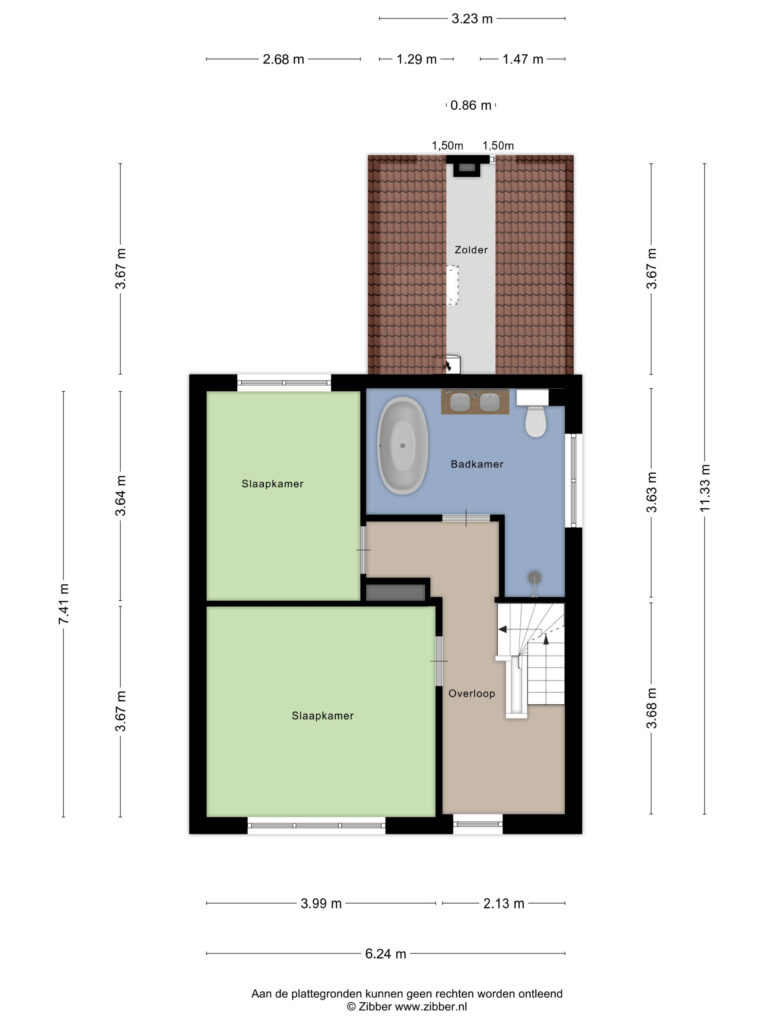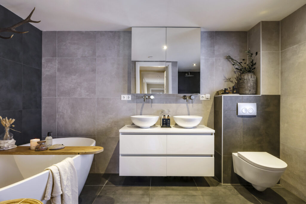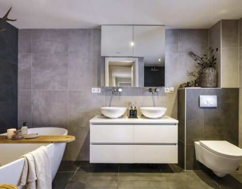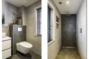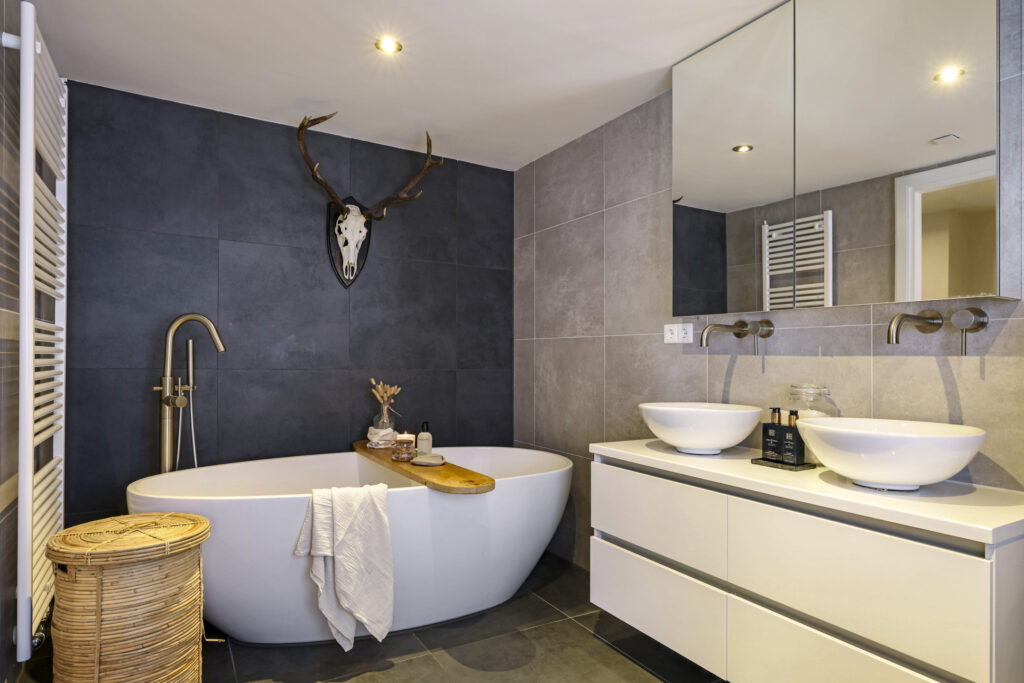 Ook deze verdieping is uitstekend verzorgd. Het ruime en moderne karakter van de twee slaapkamers en de badkamer komt tot uiting in de luxe plafondspotjes, fraaie laminaatvloeren, vloerverwarming en stijlvolle wandafwerkingen. De stijlvolle badkamer is strak afgewerkt met grote grijs- en antracietkleurige tegels. Hier beschikt u over een ligbad, een instapdouche, een dubbel wastafelmeubel, en een zwevend toilet.