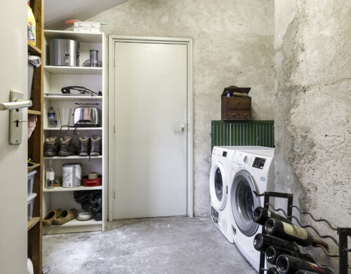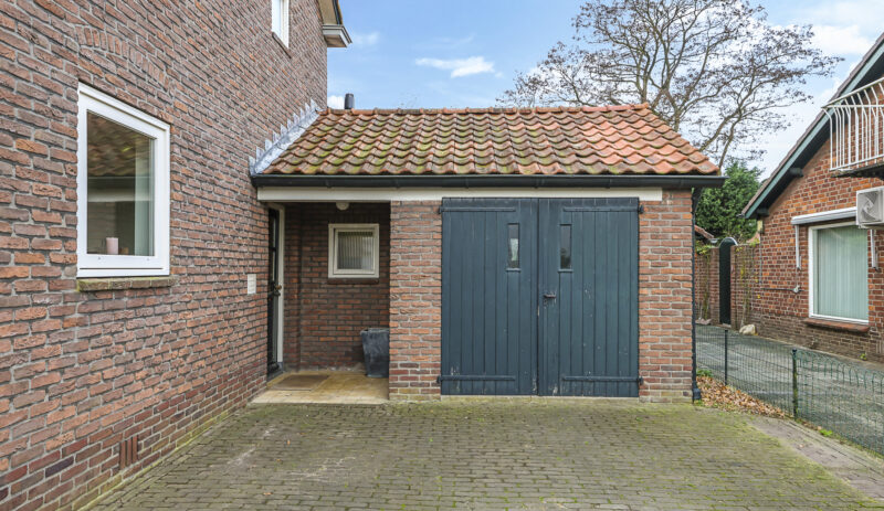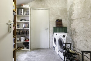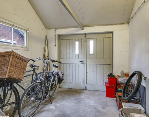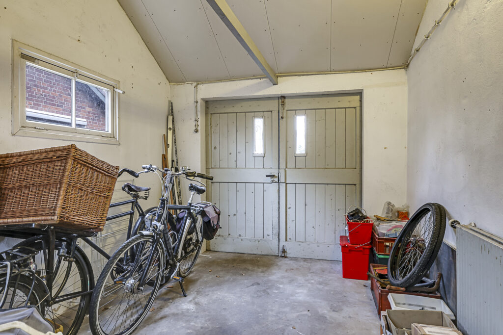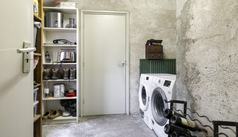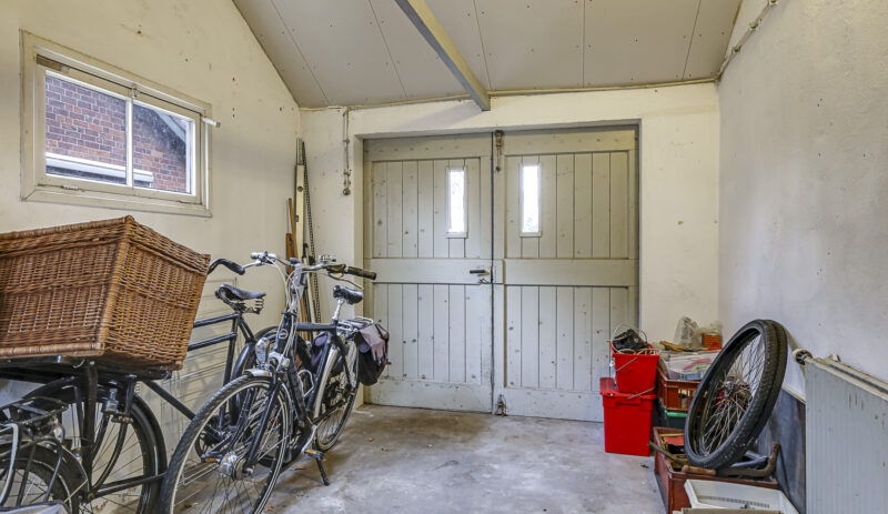 De bijkeuken is praktisch ingericht met plek voor wasapparatuur, de CV-ketel (2008) en de achterdeur. Vanuit hier loop je door naar de inpandig bereikbare garage, ideaal als hobbyruimte of opslag.