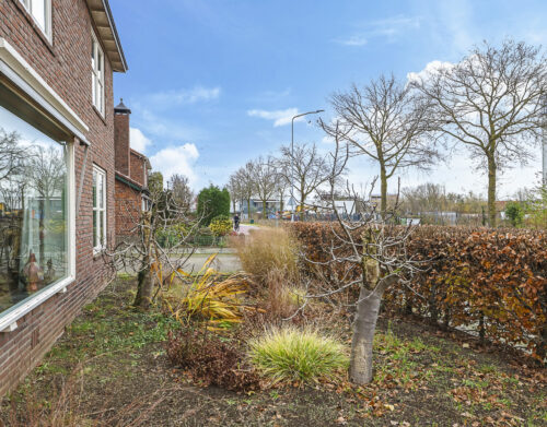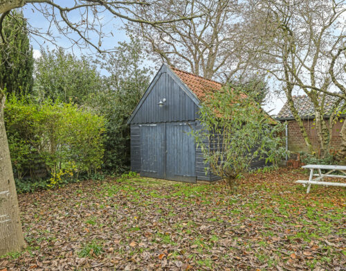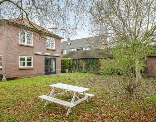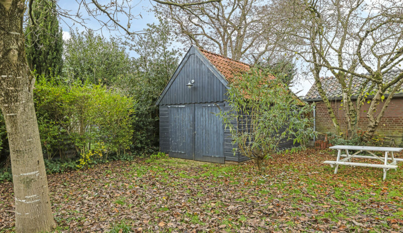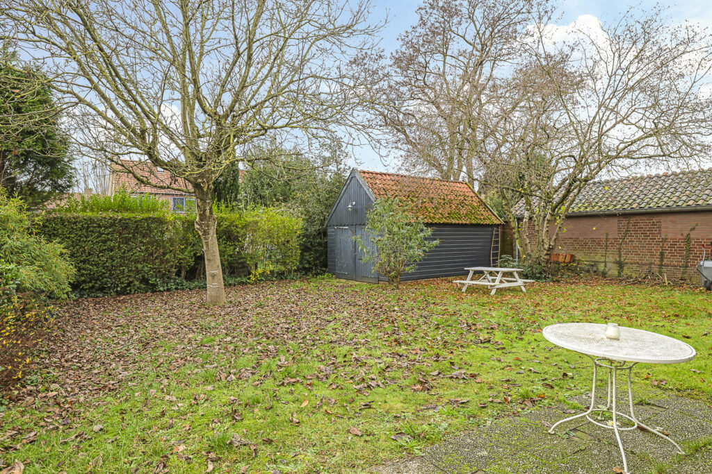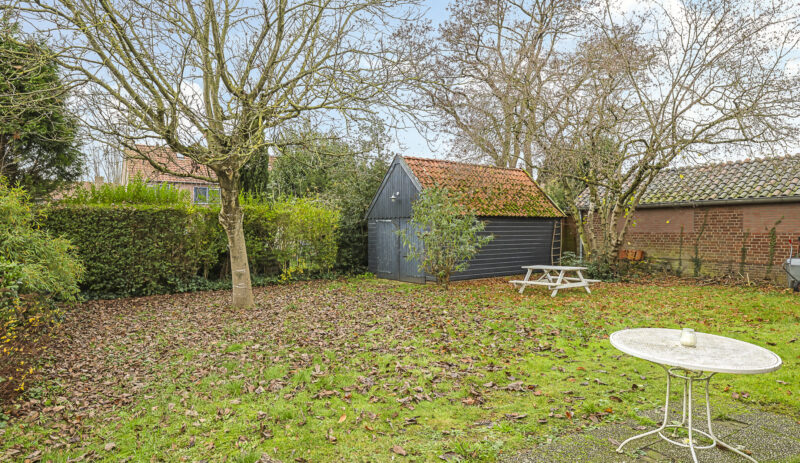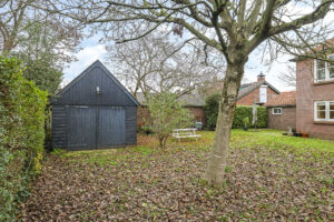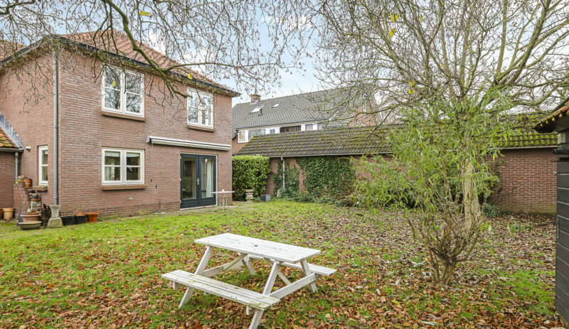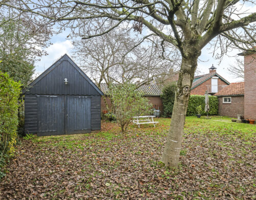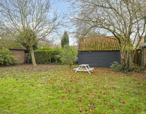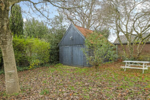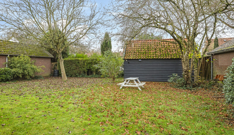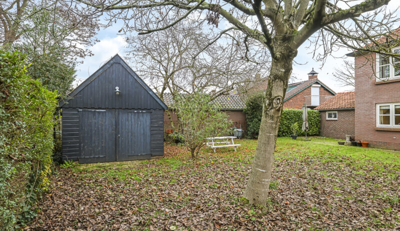 De achtertuin is gelegen op het westen, waardoor je ’s middags en ’s avonds volop zon hebt. De tuin is ingericht met een groot gazon en biedt alle ruimte om te spelen, zonnen, tuinieren of borrelen met vrienden of familie. Achterin staat een grote houten schuur met elektra – ideaal voor de fietsen, klusspullen of als hobbyruimte.
