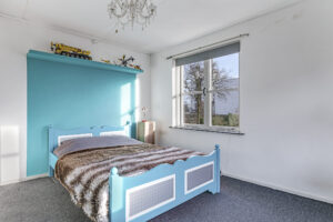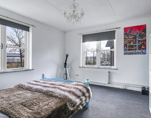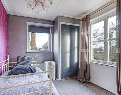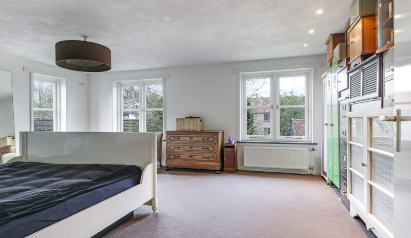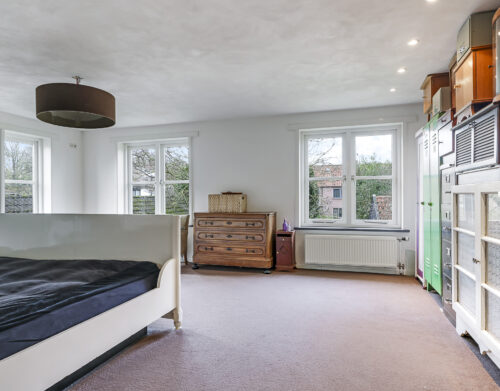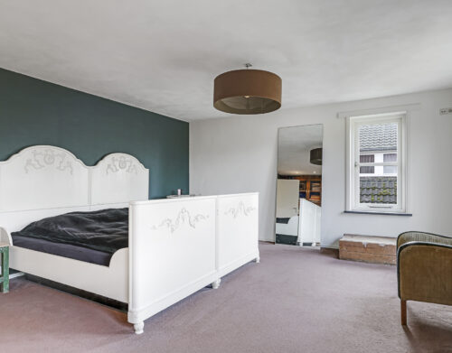 Via de overloop bereik je vier slaapkamers, waarvan twee met vaste kasten. De ouderslaapkamer is een echte verrassing: extra breed, royaal van formaat en gelegen in de uitbouw. Een heerlijke lichte ruimte met veel mogelijkheden.