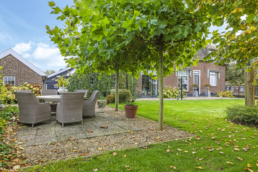De fraai aangelegde tuin biedt volop privacy en ruimte voor meerdere terrassen en zitjes.
