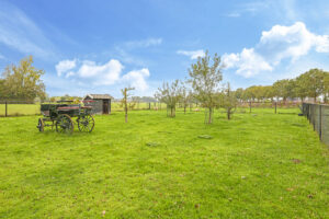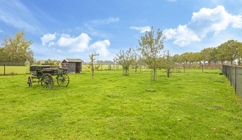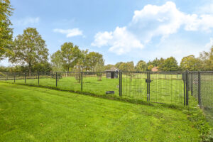 De weide rondom is volledig omheind en ideaal voor dierenliefhebbers of kleinschalige agrarische doeleinden.