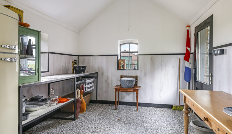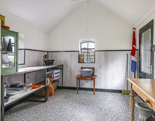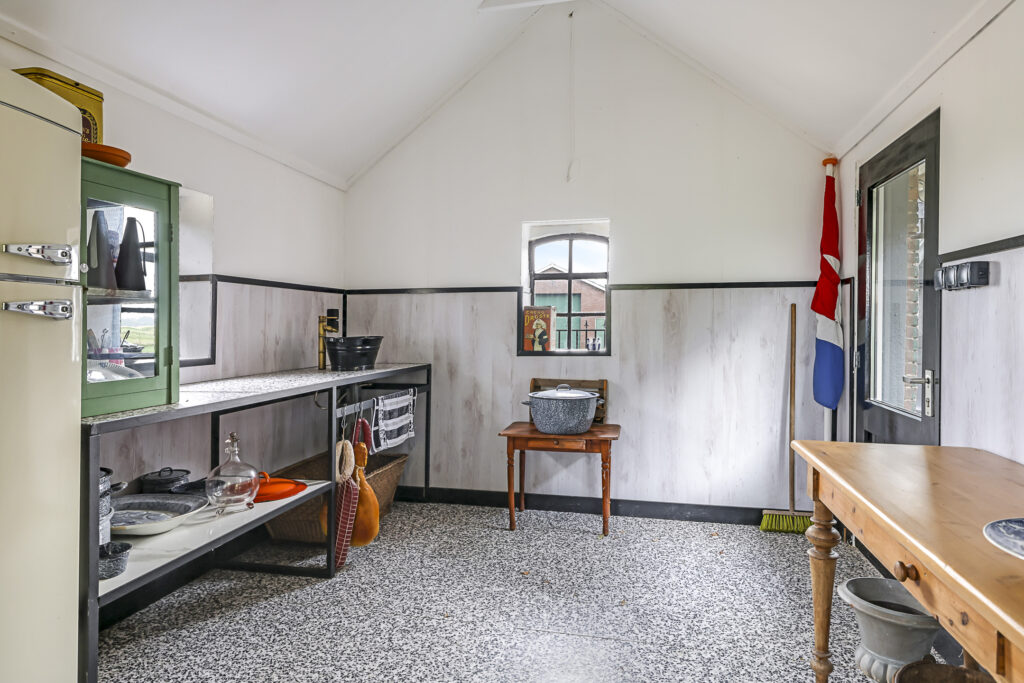 Het voormalige boerderijdeel (ca. 115 m²) is voorzien van vloerverwarming en aansluitingen voor koud en warm water, en doet momenteel dienst als ruime woon- en eetkamer. Dit gedeelte leent zich uitstekend voor andere doeleinden, zoals een mantelzorgwoning, kantoor aan huis of atelier. In de aangebouwde en naastgelegen schuur bevinden zich bovendien een royale ouderslaapkamer met douche, een bijkeuken, een tweede slaapkamer/kantoor en een wasruimte.