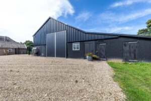 – Een karakteristieke graanschuur uit 1959, die in 2020 is voorzien van nieuwe dakbedekking én uitgerust met 28 zonnepanelen voor duurzame energievoorziening.