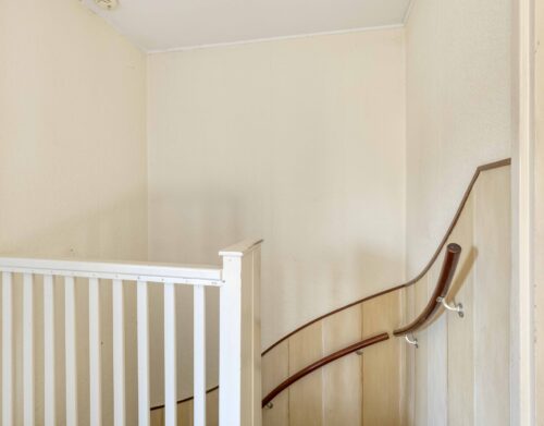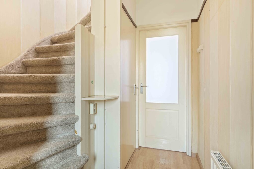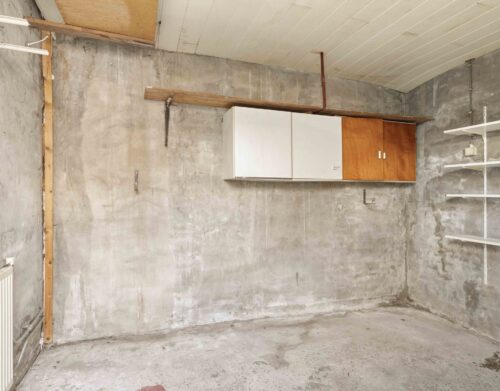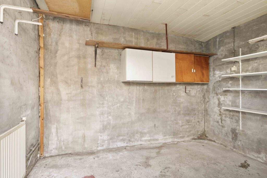 Via een luik met schuiftrap bereik je de praktische bergzolder – ideaal voor het opbergen van seizoensspullen.