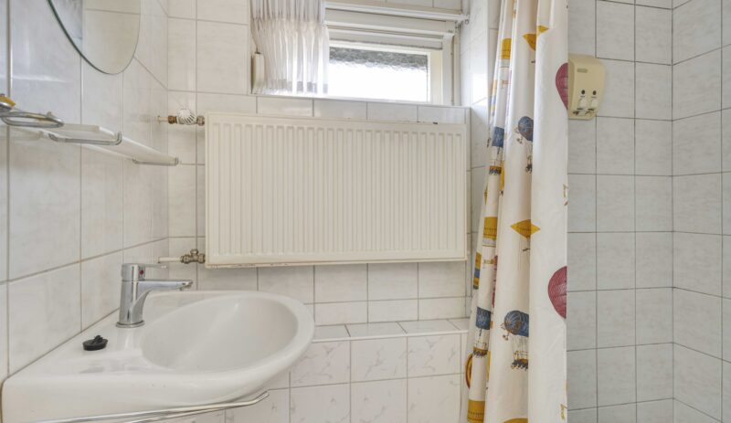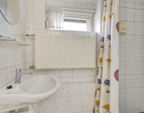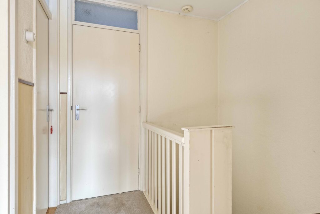 De overloop geeft toegang tot drie slaapkamers, allen voorzien van een vaste kast. De badkamer is compact en eenvoudig uitgevoerd met een douche en wastafel.