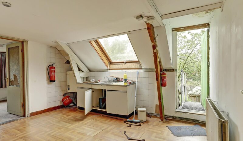 De zolder is via een trap aan de buitenzijde bereikbaar en beschikt over twee extra bergruimtes, waarvan één voorzien is van twee vaste kasten. Ook deze verdieping is flexibel te gebruiken.