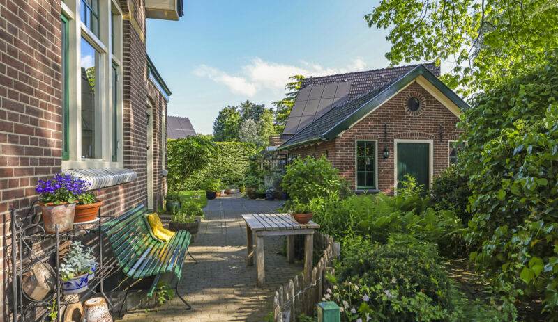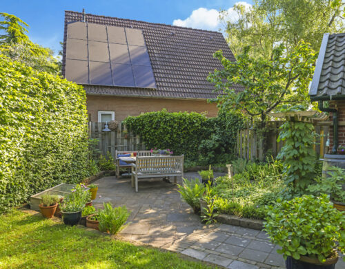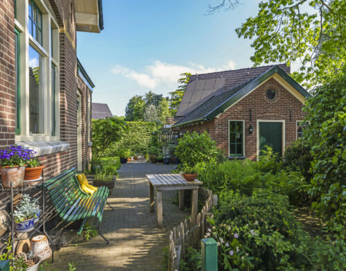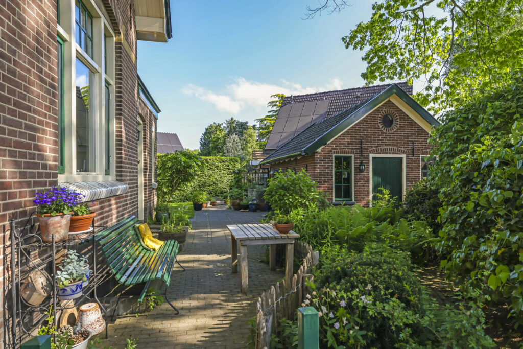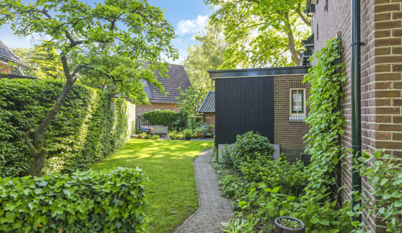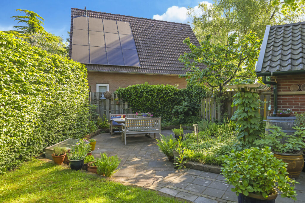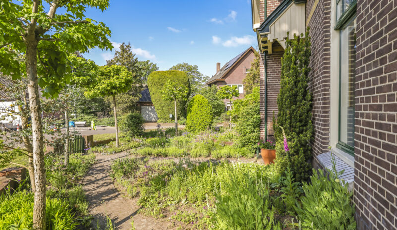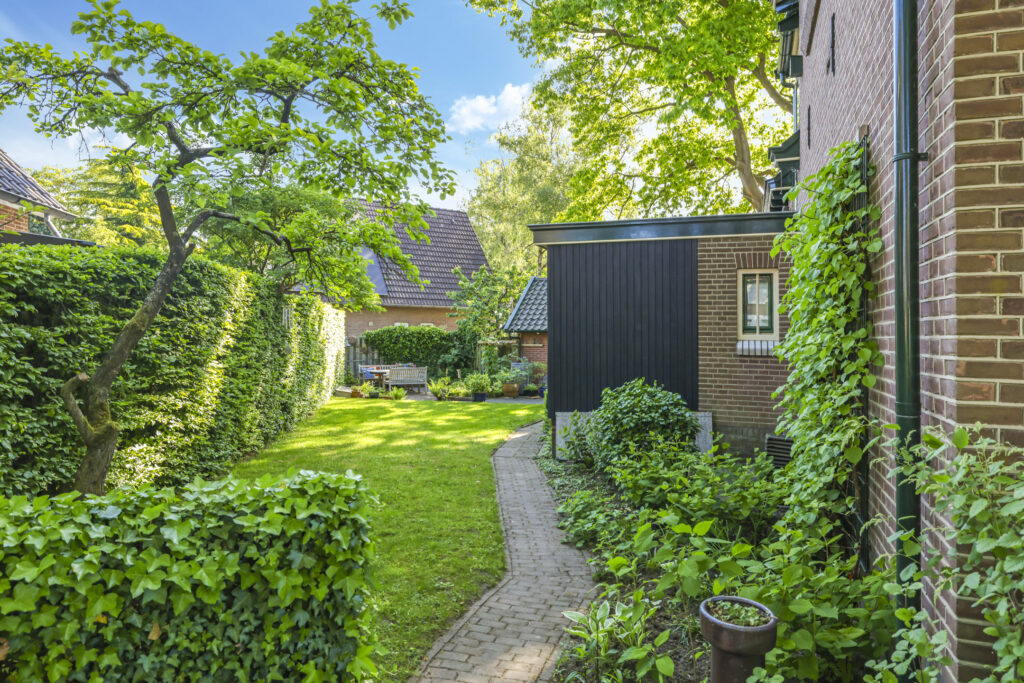 De tuin ligt rondom het huis en is met zorg aangelegd en onderhouden. Of je nu graag in de zon zit, in de schaduw leest of lekker tuiniert: alles is hier mogelijk. De grote stenen schuur met vliering biedt volop plek voor fietsen, gereedschap of een hobbyruimte. En op de eigen oprit is ruimte voor twee auto’s.