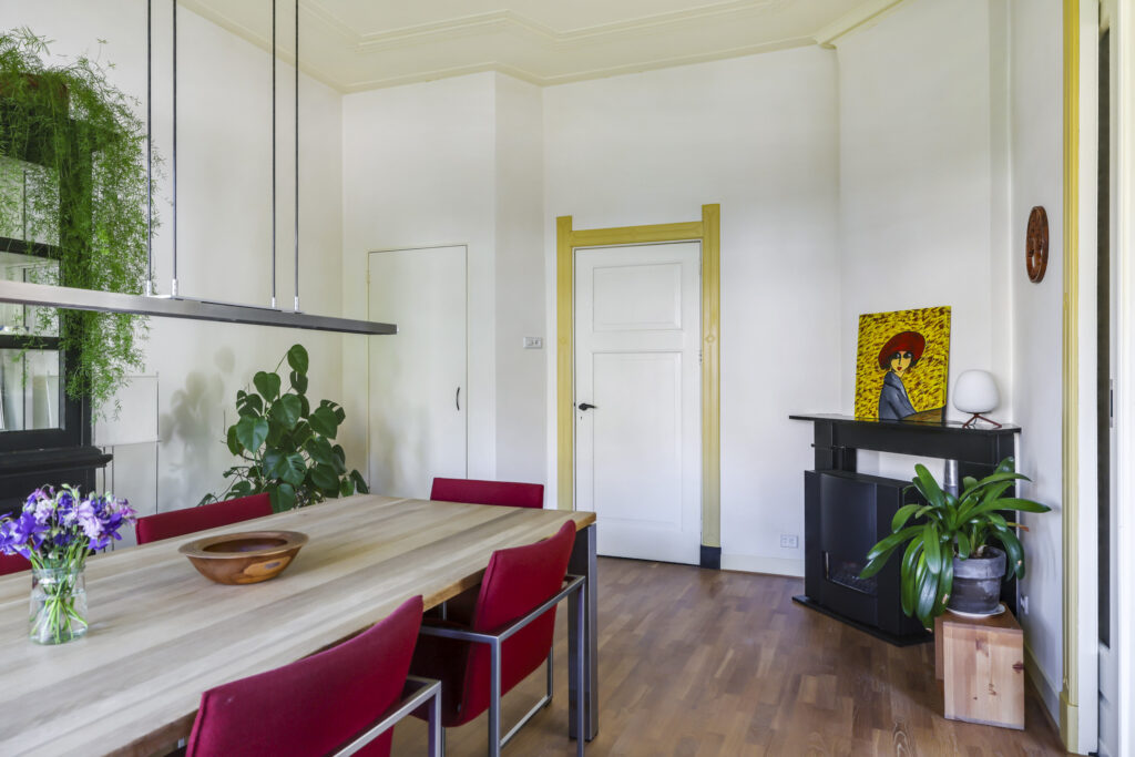 Wat deze woning echt uniek maakt, zijn de originele details: de gevels in kruisverband met speelse accenten in gele verblendsteen, de knipvoegen, de segmentbogen boven de ramen, de bovenlichten met roedeverdeling, de sierlijk afgewerkte topgevels, de geprofileerde gevelmakelaar… Alles ademt de charme van vroeger, met de kwaliteit van nu. De woning heeft een statige en tegelijk een warme uitstraling. Niet voor niets heeft deze woning een cultuurhistorische waardering.