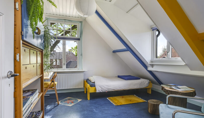 Boven slapen, badderen en opbergen