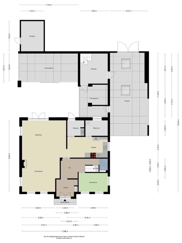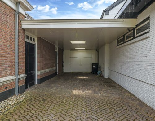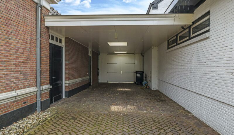 Het geheel ligt op een royaal perceel met fraai aangelegd en beveiligd voorterrein voor royale stalling of parkeergelegenheid. De ruime carport met lichtkoepels tussen de panden biedt een prettige overkapping voor meerdere auto’s.
