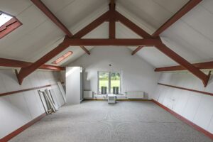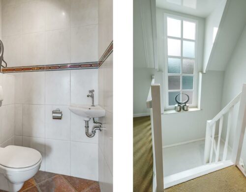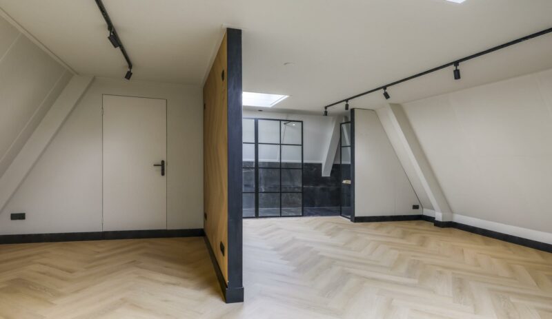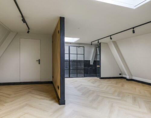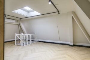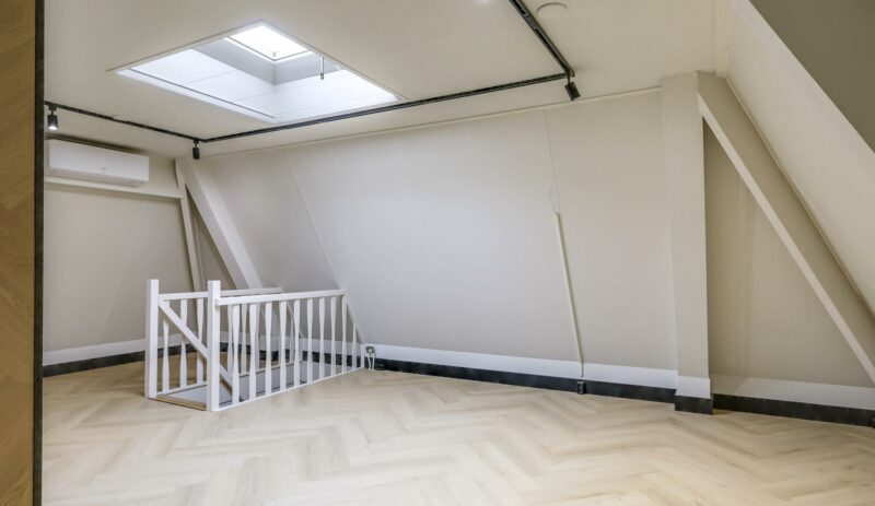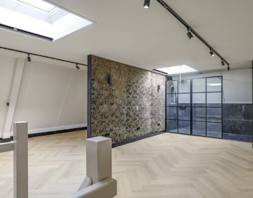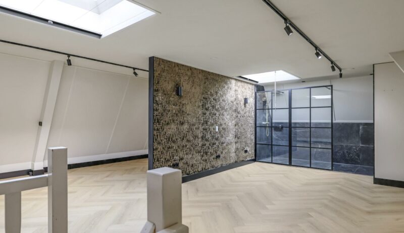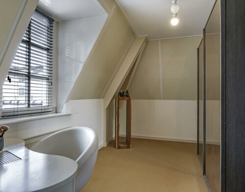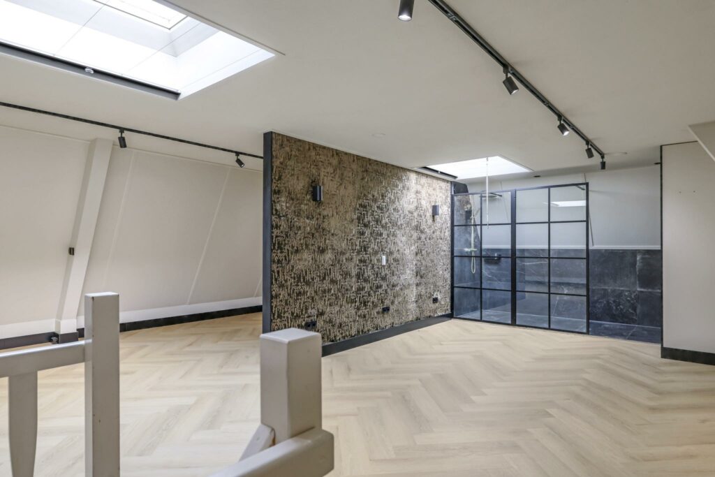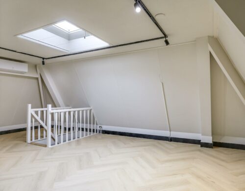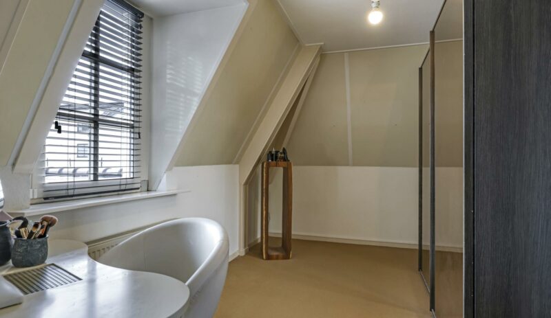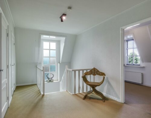 Via een vaste trap bereikt u de verrassend ruime loftachtige zolderstudio. Dankzij twee grote lichtkoepels is dit een bijzonder lichte en prettige ruimte, uitstekend geschikt als extra gasten/au pair verblijf, studio of werkkamer. Deze verdieping beschikt over een tweede badkamer en de technische ruimte met cv-installatie. De aanwezige airconditioning maakt deze verdieping compleet.
