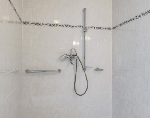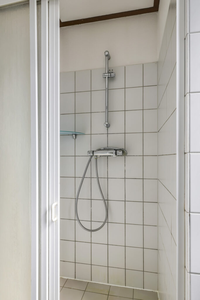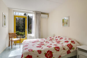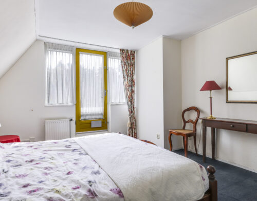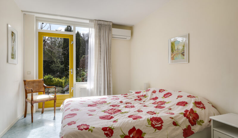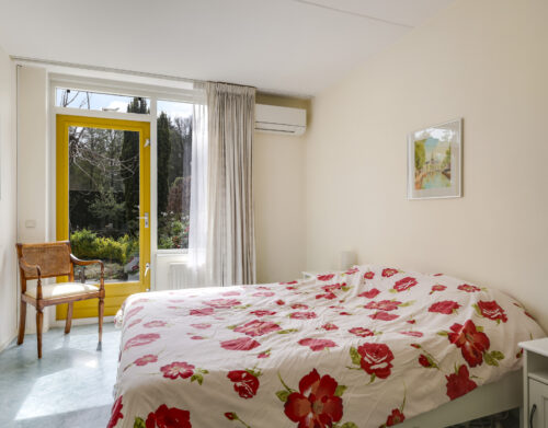 Wat deze woning écht bijzonder maakt, is de slaapkamer op de begane grond, voorzien van airconditioning. Deze kamer heeft direct toegang tot een nette badkamer met douche, tweede toilet en wastafel — ideaal voor wie gelijkvloers wil wonen.