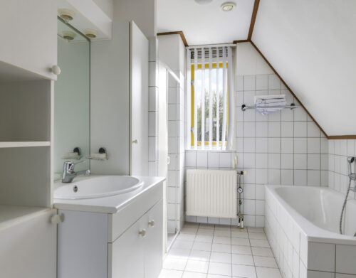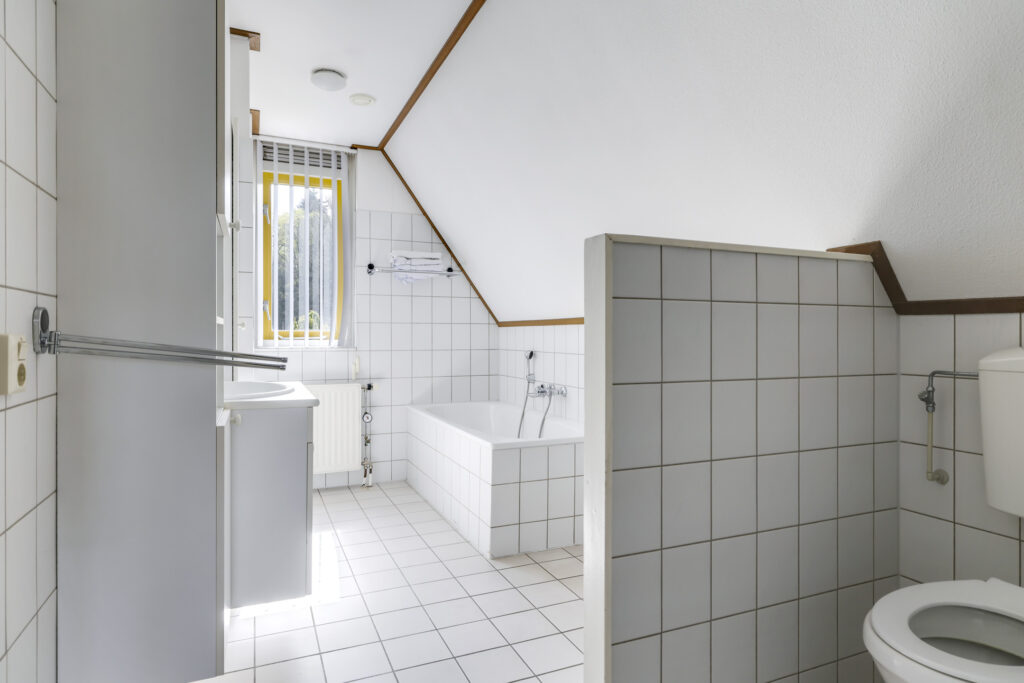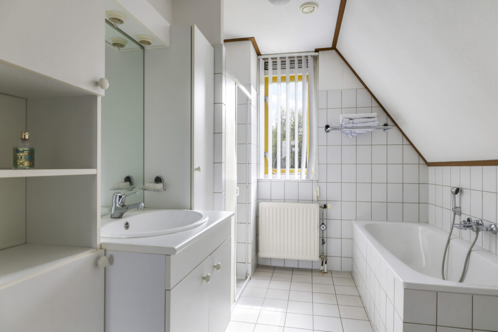 Op de eerste verdieping bevinden zich drie slaapkamers, waarvan twee ruim en één iets compacter van formaat. De tweede badkamer beschikt over een ligbad, aparte douche, derde toilet en een wastafelmeubel. Kortom de ideale indeling van een gezinswoning.