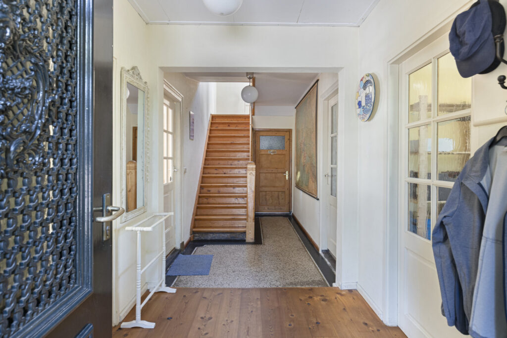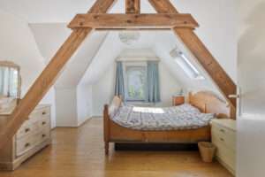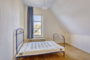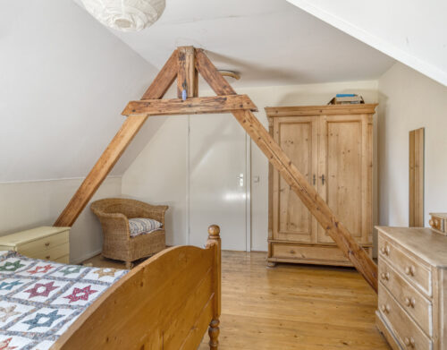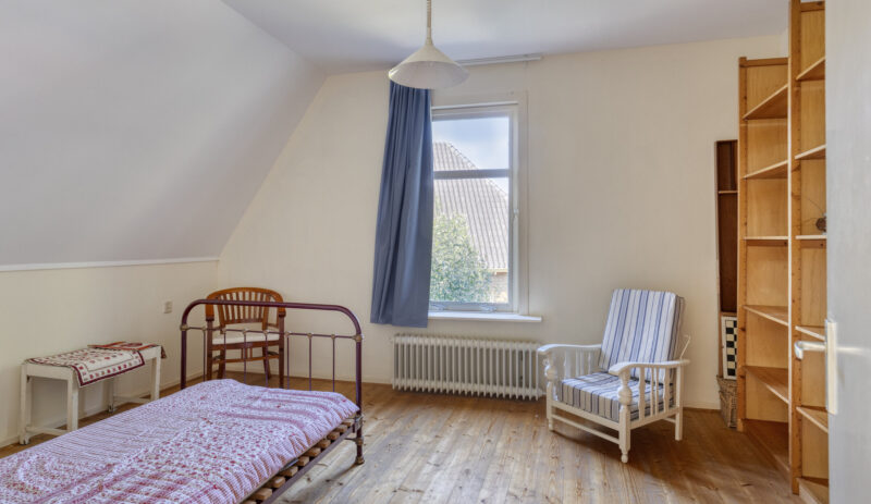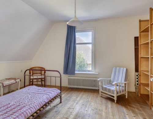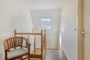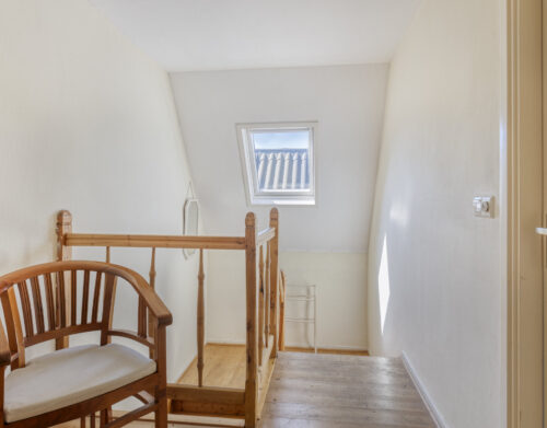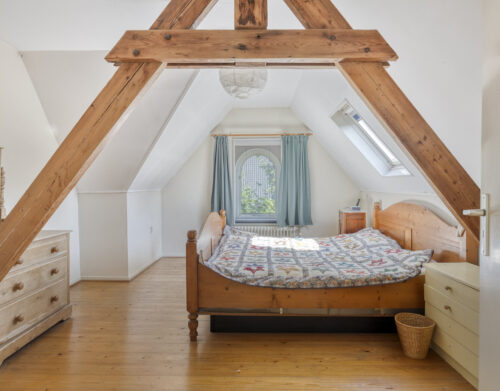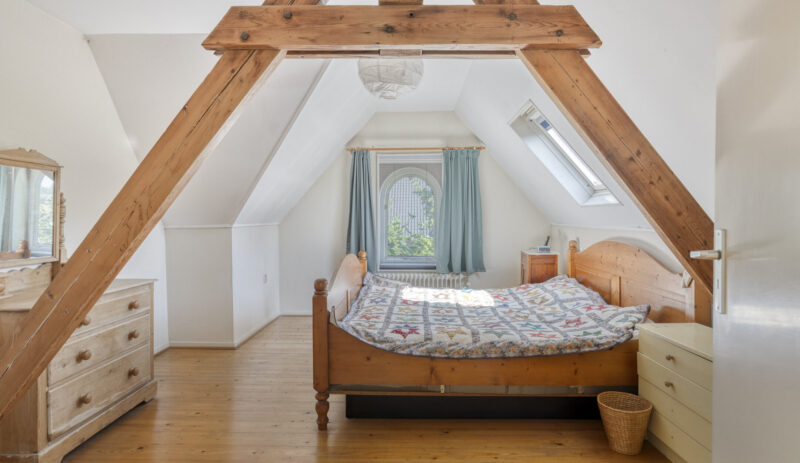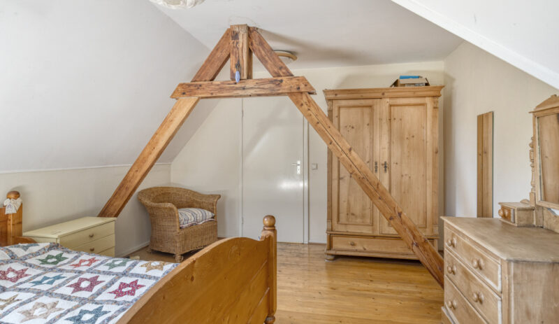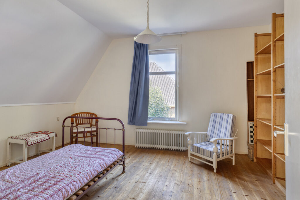 Via de authentieke trap kom je op de eerste verdieping. Vanuit de ruime overloop heb je toegang tot drie riante slaapkamers, waarvan in de grootste de dakspanten mooi in het zicht zijn. Tevens vind je op de eerste verdieping een praktische berging/walk in closet en de recent (2022) gemoderniseerde badkamer. De badkamer is voorzien van wastafel met meubel, inloop douche, ligbad, wandcloset en vloerverwarming, geheel eigentijds afgewerkt.